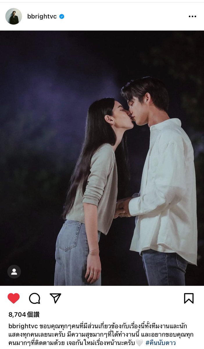 Wish both of you happiness forever, take care each other well. You can say anything honestly without having to lie to each other again. So glad to meet you. Love 🤍 #คืนนับดาวตอนจบ #bbrightvc @bbrightvc twitter.com/bbrightvc/stat…