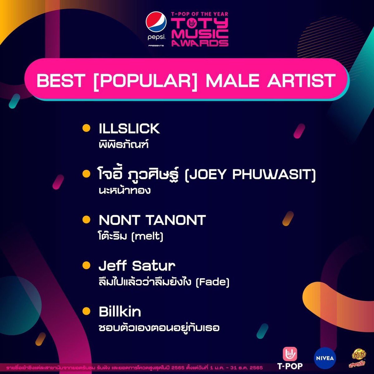🏆 Billkin ได้รับรางวัล BEST [POPULAR] MALE ARTIST OF THE YEAR เพลง ชอบตัวเองตอนอยู่กับเธอ จากงาน 'PEPSI Presents TOTY Music Awards 2022'