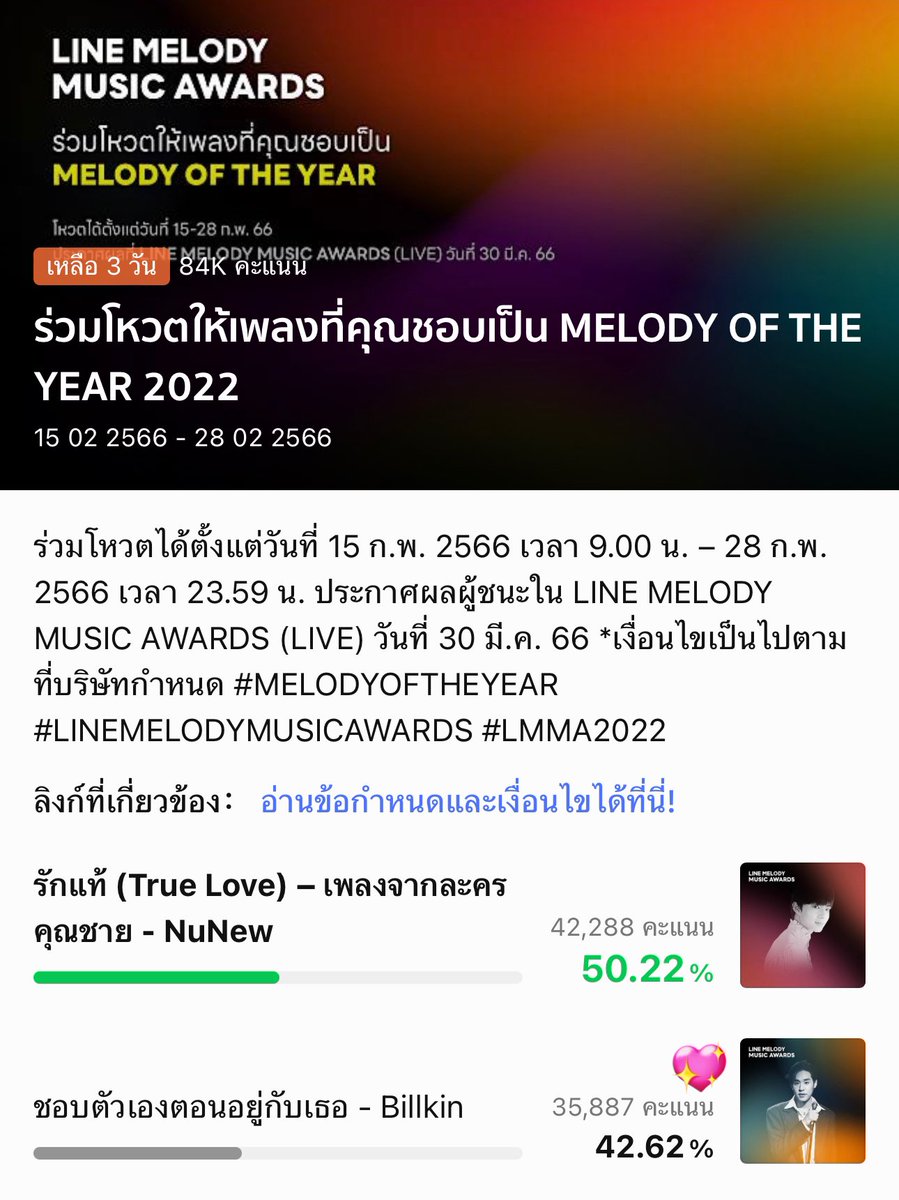 มาโหวตให้ #ชอบตัวเองตอนอยู่กับเธอ ใน LINE MELODY OF THE YEAR 2022 กันนะคะ