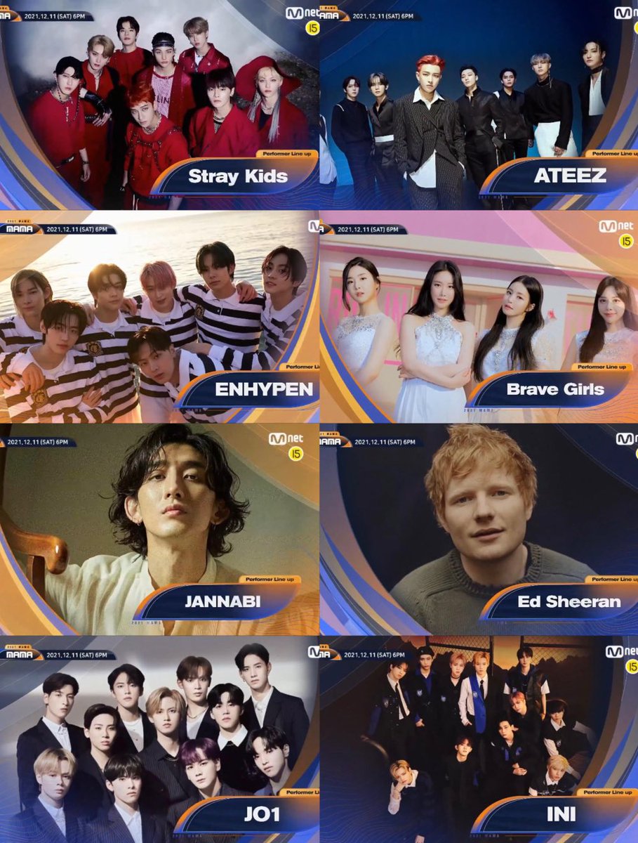 ไลน์อัพศลป.งาน #2021MAMA มาแล้ว ดู"ฟรี"ในJOOXได้เลย 11 ธ.ค.นี้ •Street Woman Fighter X อีฮโยริ •Wanna One •aespa •Brave Girls •NCT 127, •NCT DREAM •NCT U •ENHYPEN •ITZY •Stray Kids •TXT •ATEEZ •JO1 •Ed Sheeran •INI •JANNABI #ดูMMA2021ที่JOOX