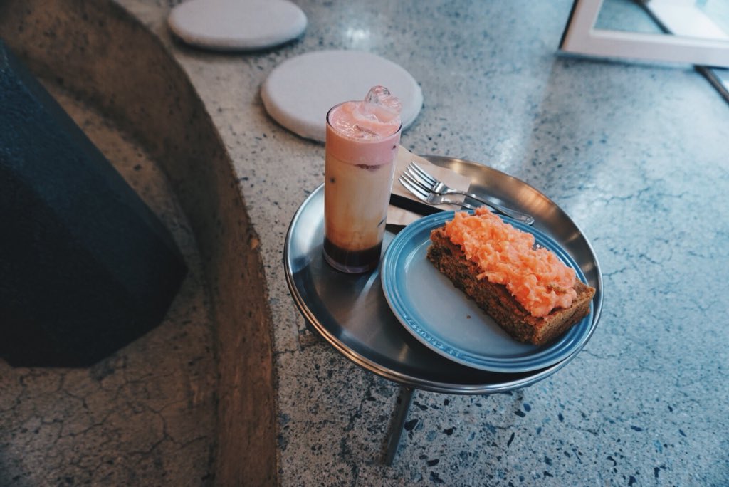 คาเฟ่สไตล์มินิมอลในเกาหลี! โทนขาวเทาชมพู ถ่ายรูปแล้วดีงามมาก ที่นั่งจัดเป็นวงกลมเหมือนมาแคมป์ไฟ สั่ง honey butter carrot cakeกับ chandelier latteไป รสชาติดีแบบเกินคาด ใครมีแพลนไปเกาหลี ไปกัน! @aroii #อร่อยไปแดก #รีวิวเกาหลี #รีวิวคาเฟ่