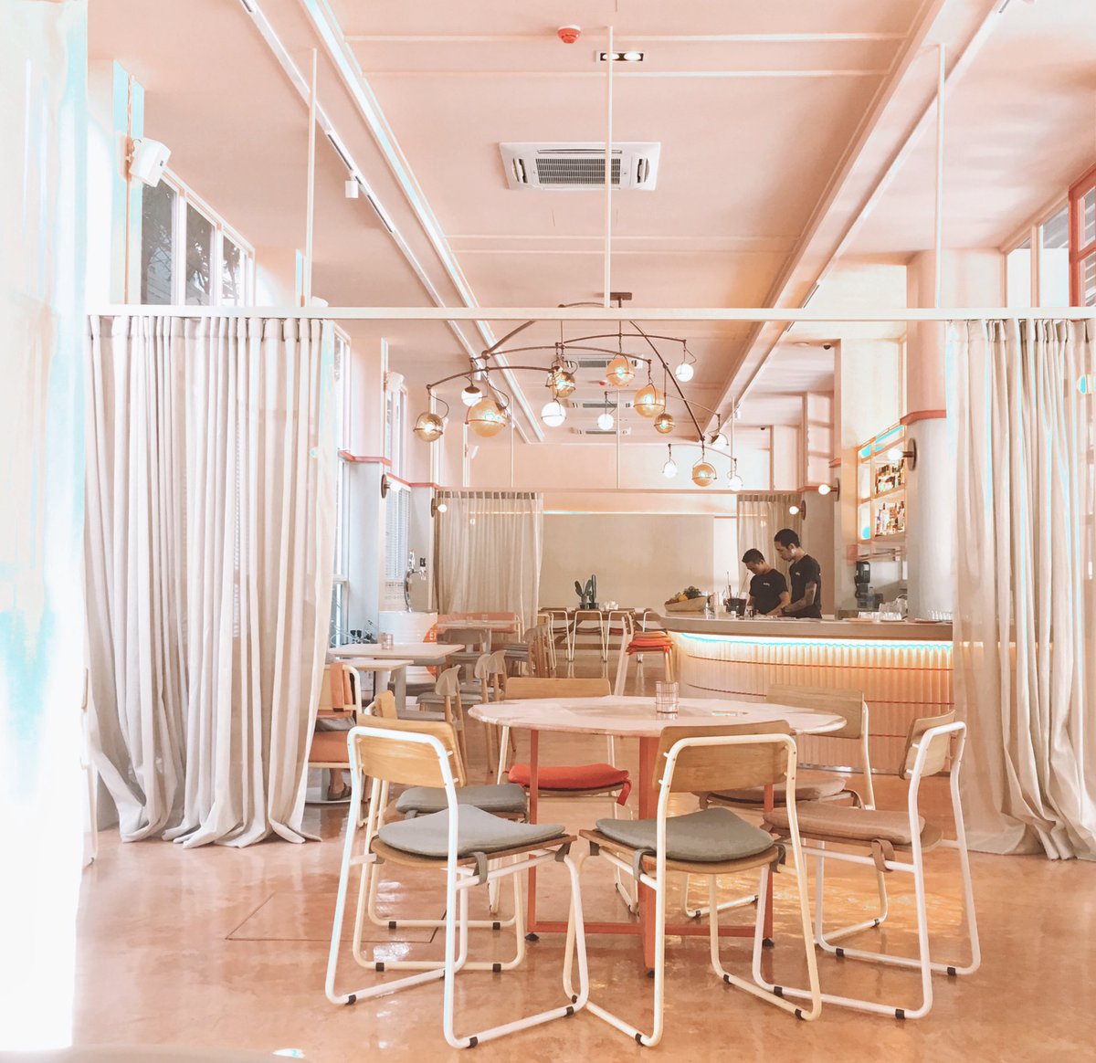 คาเฟ่หวานๆย่านอารีย์ โทนสีพีชพาสเทล สุดคิ้วท์ ภายในร้านกว้าง มีโต๊ะนั่งเยอะพอสมควร มุมถ่ายรูปก็สวย ตอนกลางคืนจะเป็นบาร์ ไว้นั่งจิบค็อกเทลเกร๋ๆ