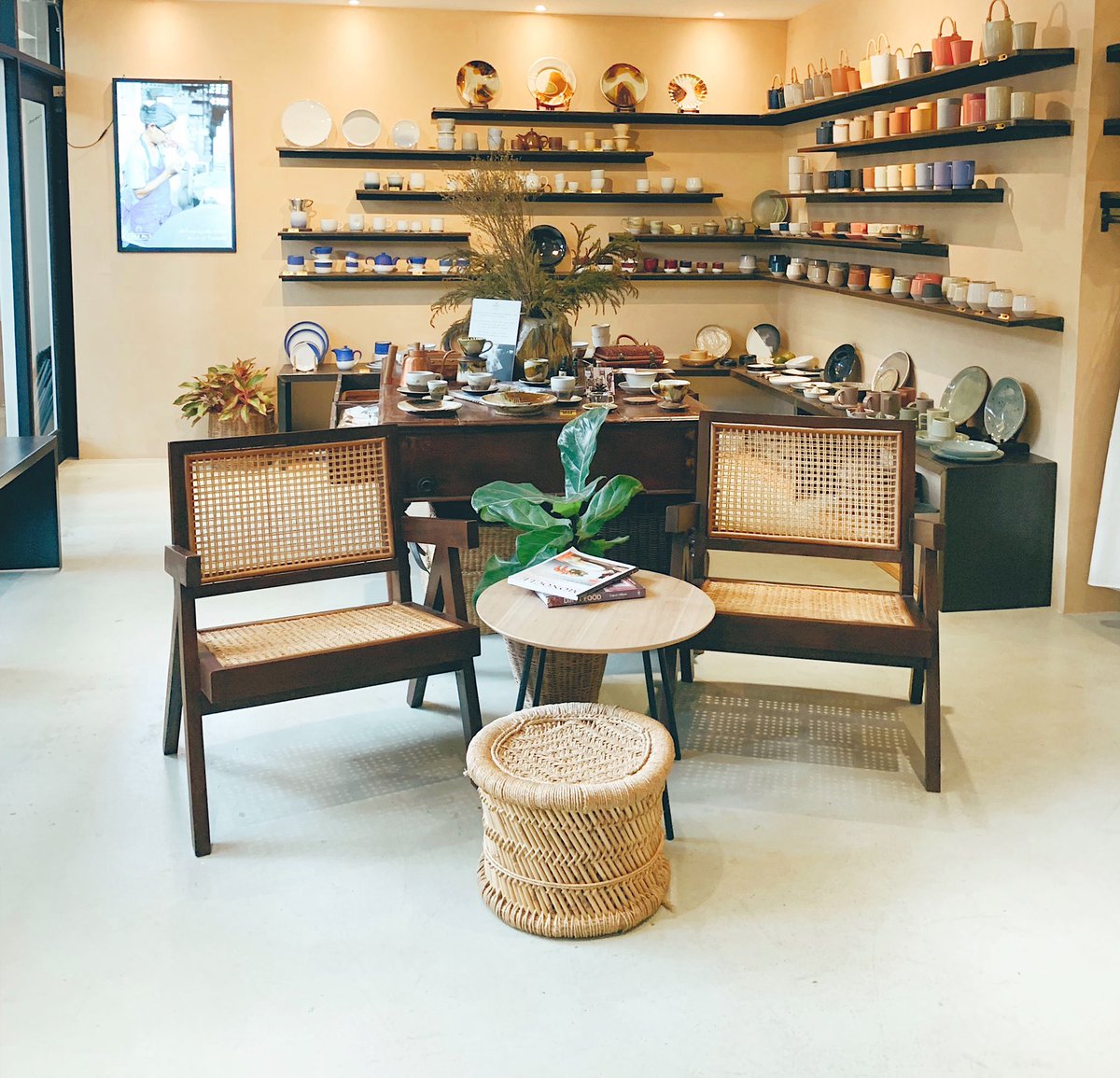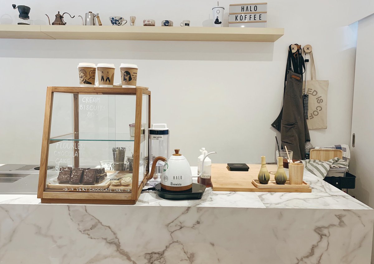 คาเฟ่ย่านเอกมัย15 ที่มีแก้วปั้นเซรามิค ที่เป็นเอกลักษณ์ อุปกรณ์ชงกาแฟ และเมล็ดกาแฟขาย เดินเลือกซื้อเพลินๆ เมนูกาแฟที่ใส่แก้วแล้วดูดีมาก ลายแก้วคือเลิศเว่อร์