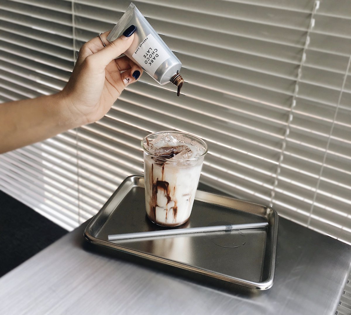 คาเฟ่มินิมอลย่านพระราม9 ร้านเล็กๆ ตกแต่งอย่างเรียบง่ายแต่ดูดี มีเมนูสุดคูลอย่าง milk chocolate DIY ที่บีบช็อคโกแลตจากหลอด ถ่ายรูปออกมาชิคๆ