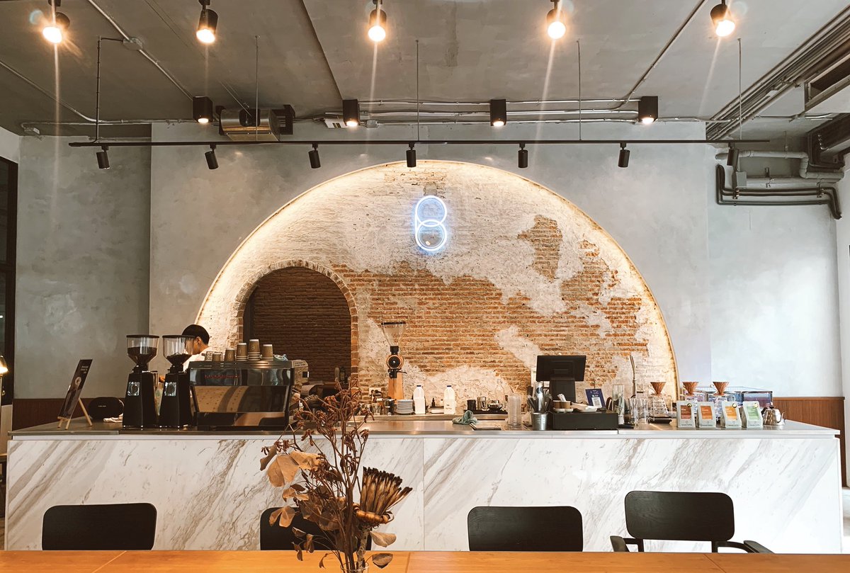 คาเฟ่สุดเท่ย่านประชาชื่น ในม.ธุรกิจบัณฑิตย์ ผนังอิฐปูนเปลือยที่มีความคูล กับโต๊ะลายหินอ่อน เป็น Specialty coffee กลิ่นกาแฟหอมๆ รสชาติกลมกล่อม มีขนมปังด้วยน้า