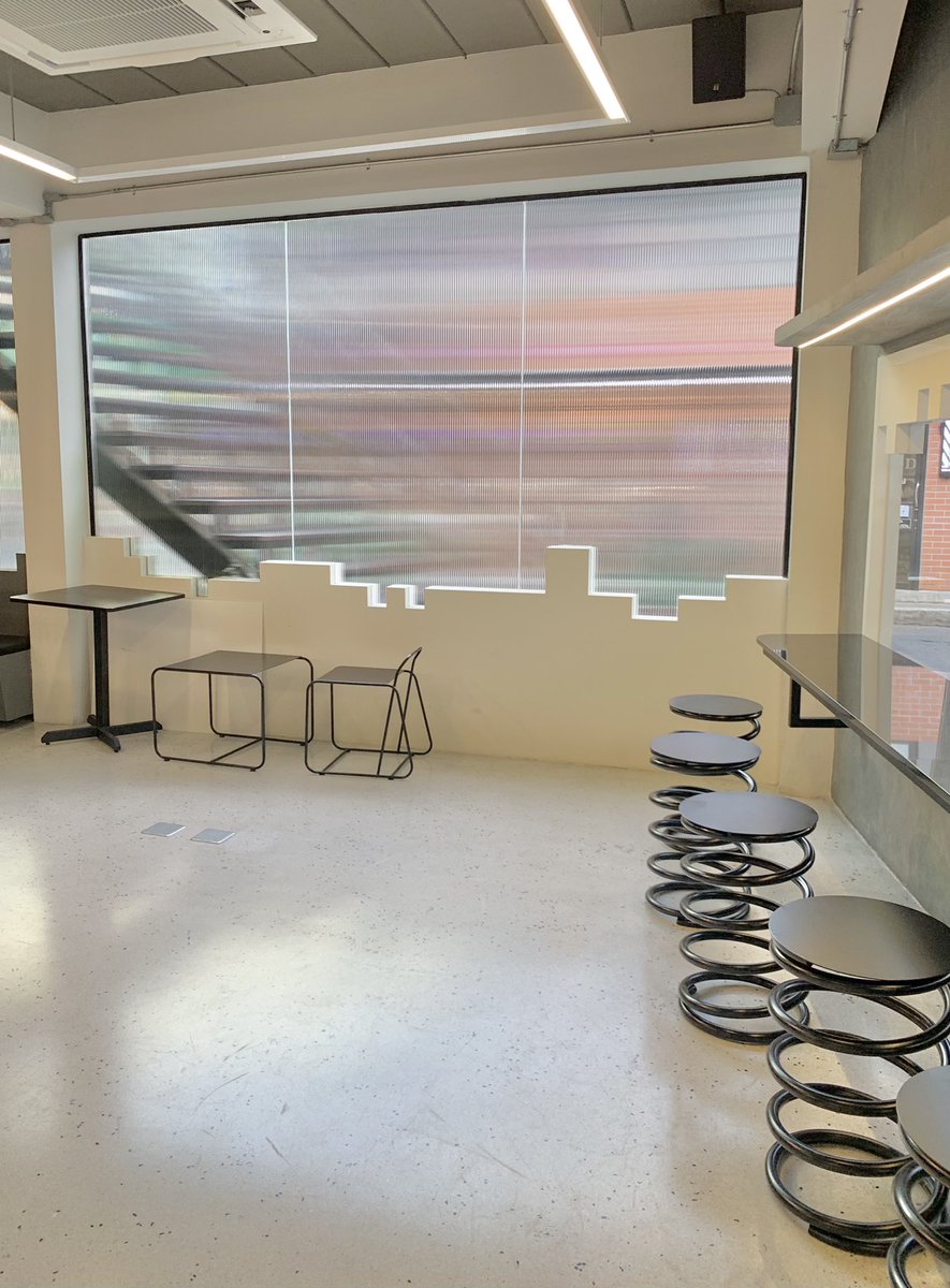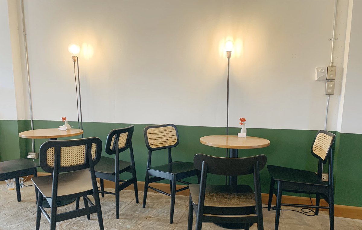 คาเฟ่สุดเก๋ย่านสีลม อยู่ในตึก Tait ดีไซน์โมเดิร์น กระจกล้อมรอบ ที่นั่งข้างนอกเป็นโต๊ะหวาย ใต้ต้นไม้ เมนูมีเครื่องดื่มและเค้ก ขนมเล็กน้อย กาแฟโอเคเลยนะ บริการดี pop up ถึงปลายปี