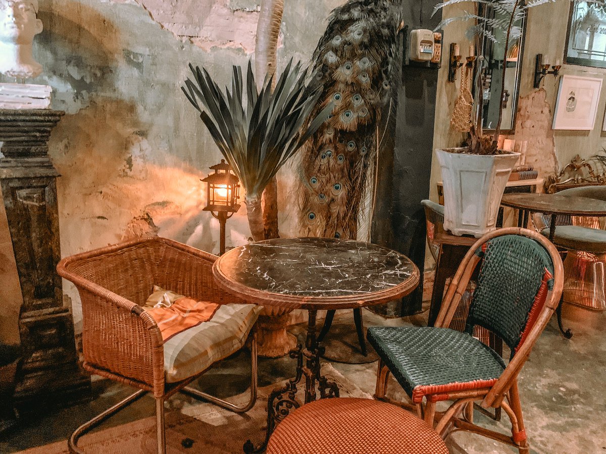 คาเฟ่สุดวินเทจย่านตลาดน้อย กับประตูไม้หน้าร้านเก๋ๆ ข้างในจะค่อนข้างมืด มีความลึกลับน่าค้นหา ท่างกลางไฟสลัว ที่บรรยากาศดีมาก ตกแต่งสวย เครื่องดื่มกับเค้กอร่อยเลย