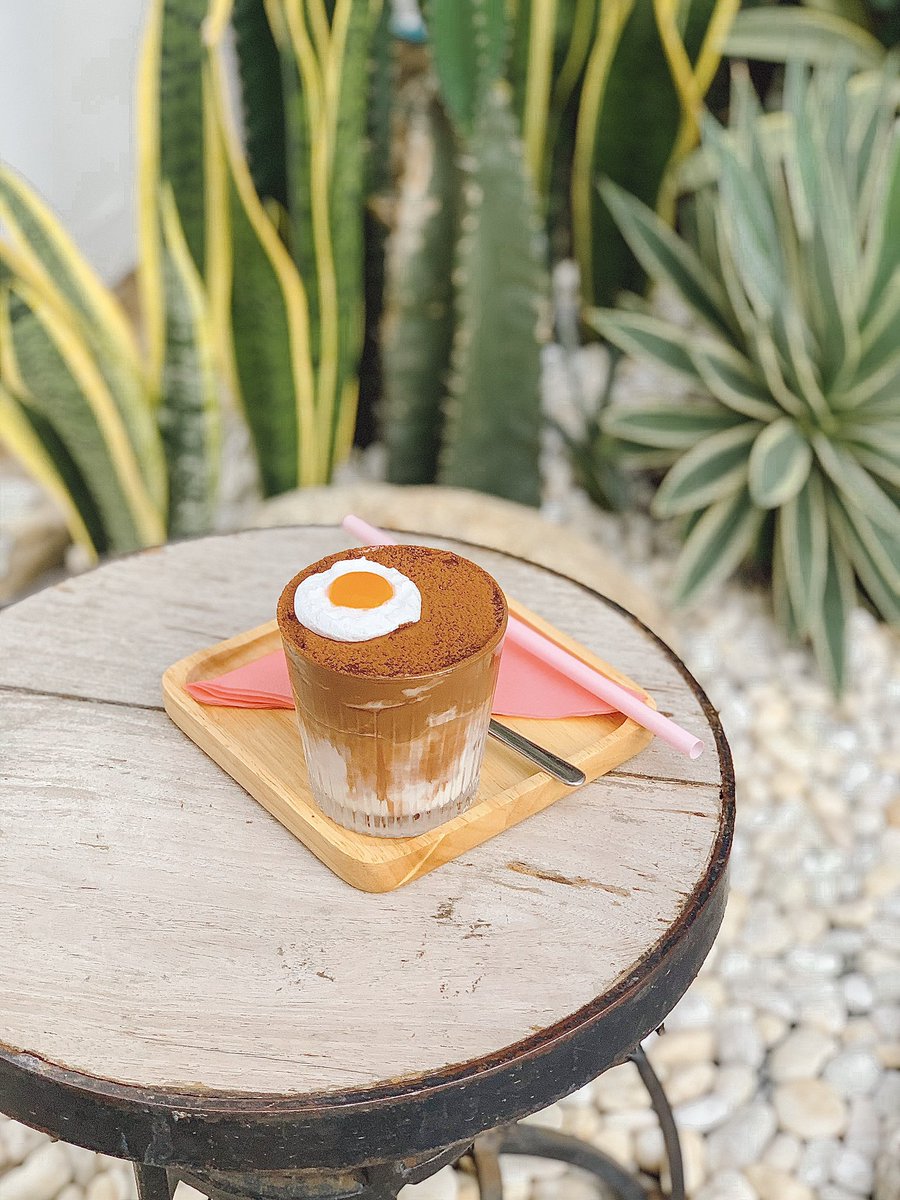 คาเฟ่สุดคลีนย่านกรุงธนบุรี โทนขาวกับการตกแต่งด้วยต้นกระบองเพชร และผนังกระเบื้อง ข้างในร้านโปร่ง สบาย บริการดี น้องไข่ดาวน่าร๊าก เป็นโกโก้เจ้มจ้น