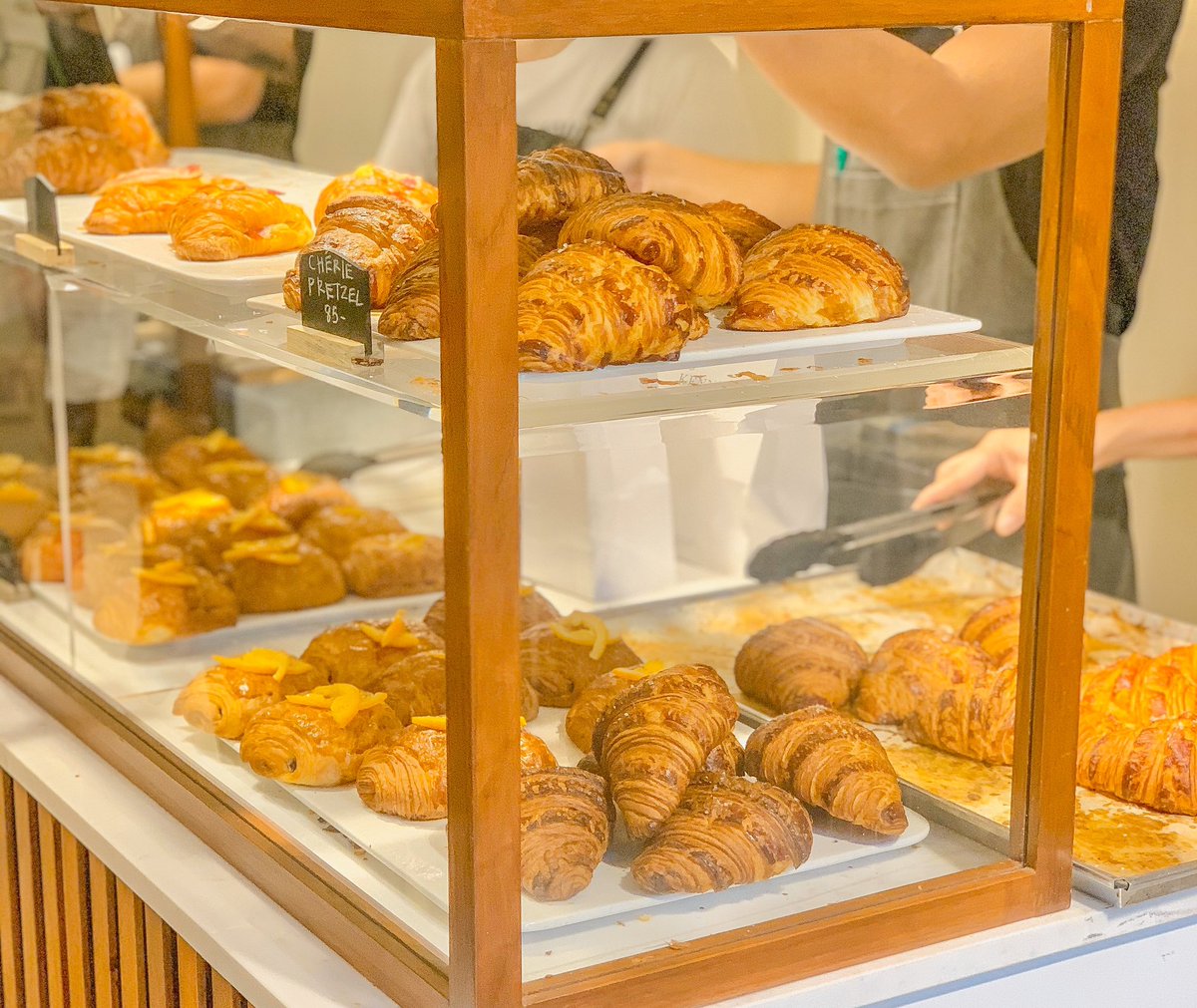 ร้านครัวซองสุดฮอตมาเปิดอีกสาขาที่อารีย์ คนต่อแถวกันตลอด เข้าไปในร้านก็จะได้กลิ่นหอมครัวซอง มีให้เลือกหลายแบบ สั่ง Cherie pretzel เป็นครัวซองที่ผสานรสชาติ original pretzel หอมเนย แป้งดี