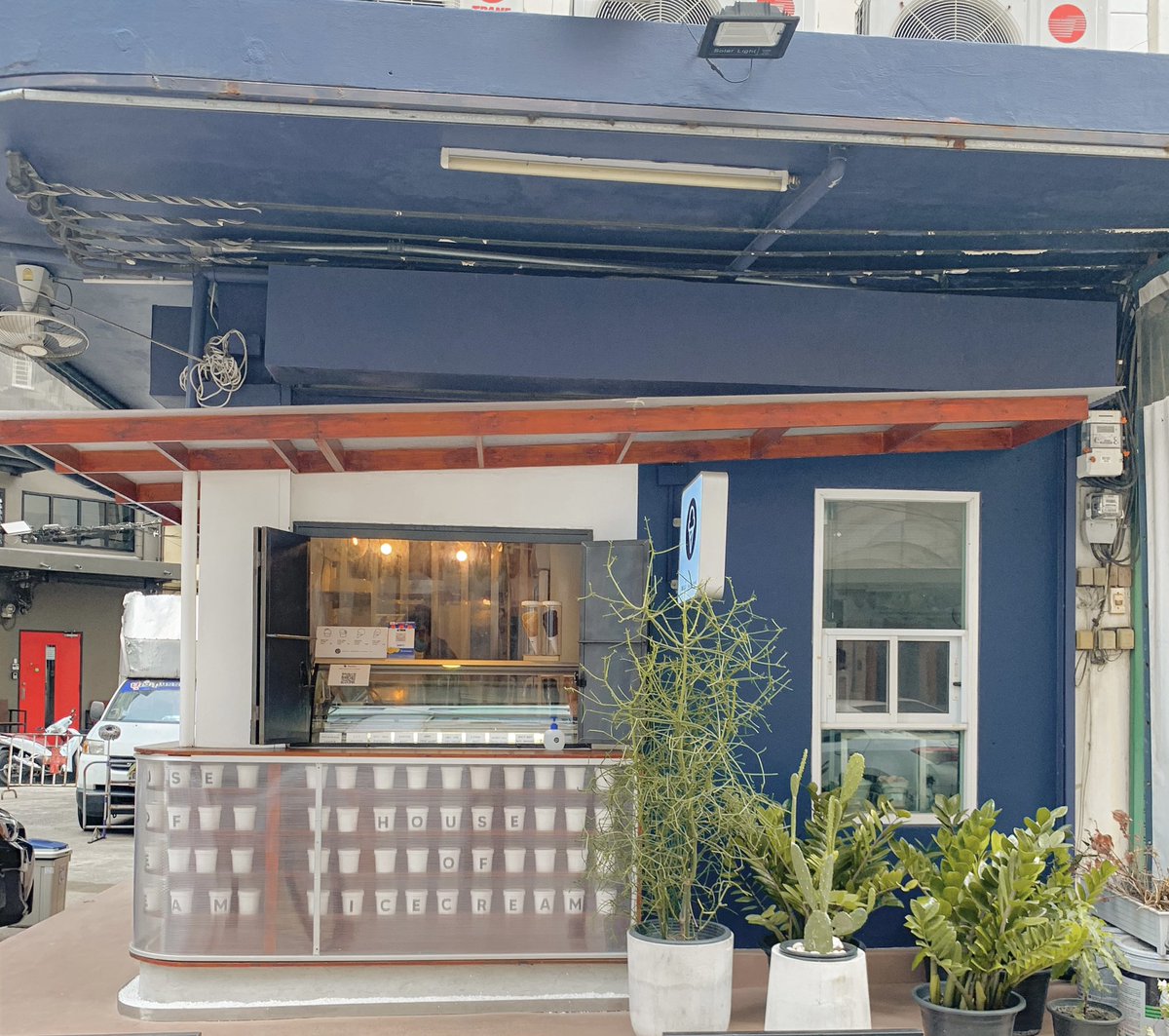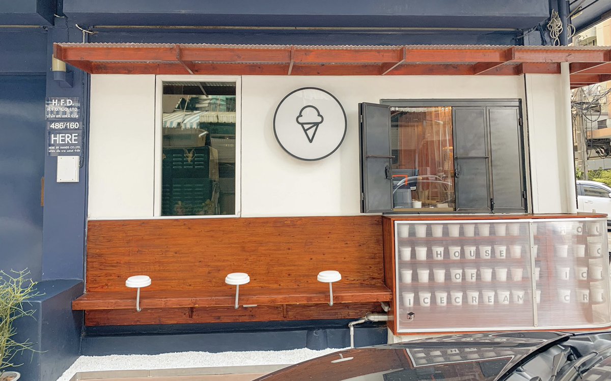 คาเฟ่ไอศกรีมสุดคิ้วท์ย่านราชเทวี โดดเด่นด้วยโทนสีน้ำเงินตัดกับสีของไม้ ไอศกรีมโฮมเมดมีให้เลือกหลากหลายรส จะใส่โคนหรือถ้วย พร้อมกับวาฟเฟิล ดีย์