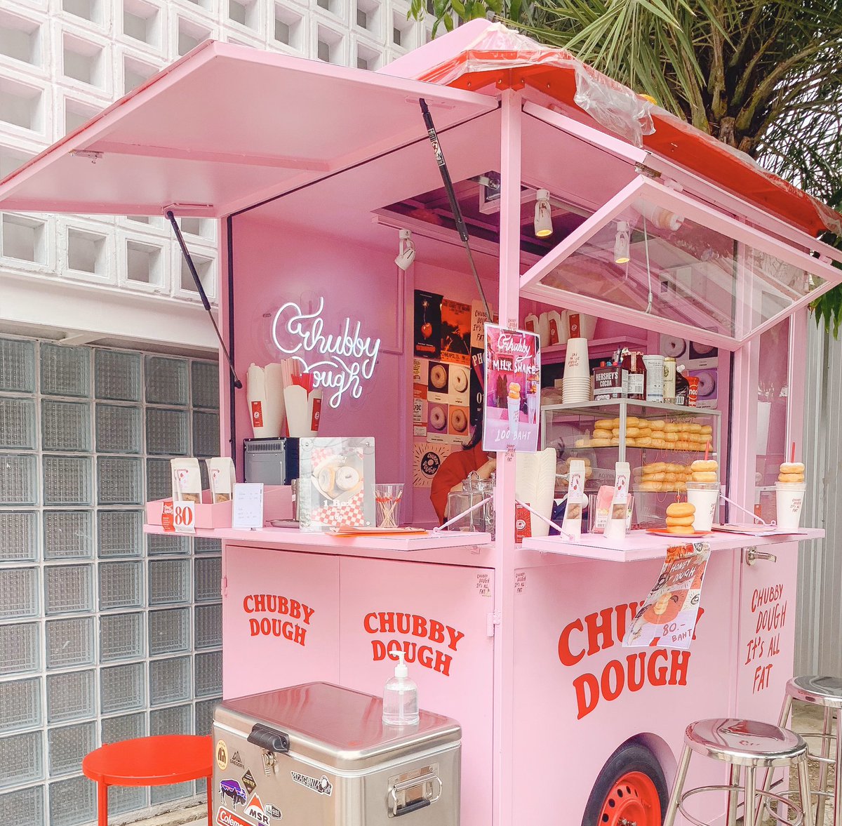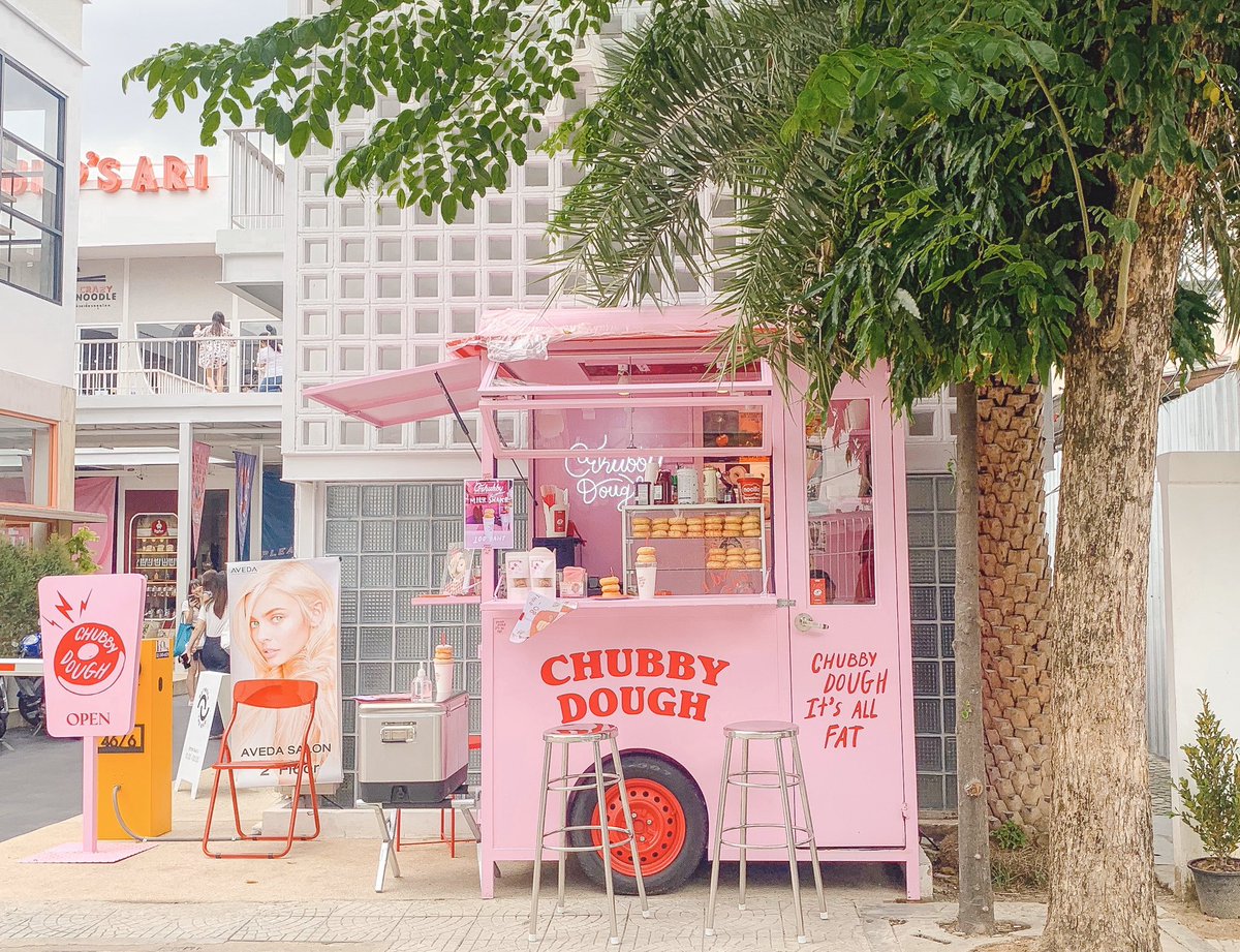 ร้านโดนัทสุดคิ้วท์ที่โครงการ Gump อารีย์ เป็นฟู้ดทรัคขนาดมินิสีชมพูน่ารักฝุดๆ เมนูจะมีโดนัท และเครื่องดื่ม milk shake ที่ท็อปด้วยโดนัท มีโรยไอซิ่ง4รสชาติให้เลือก