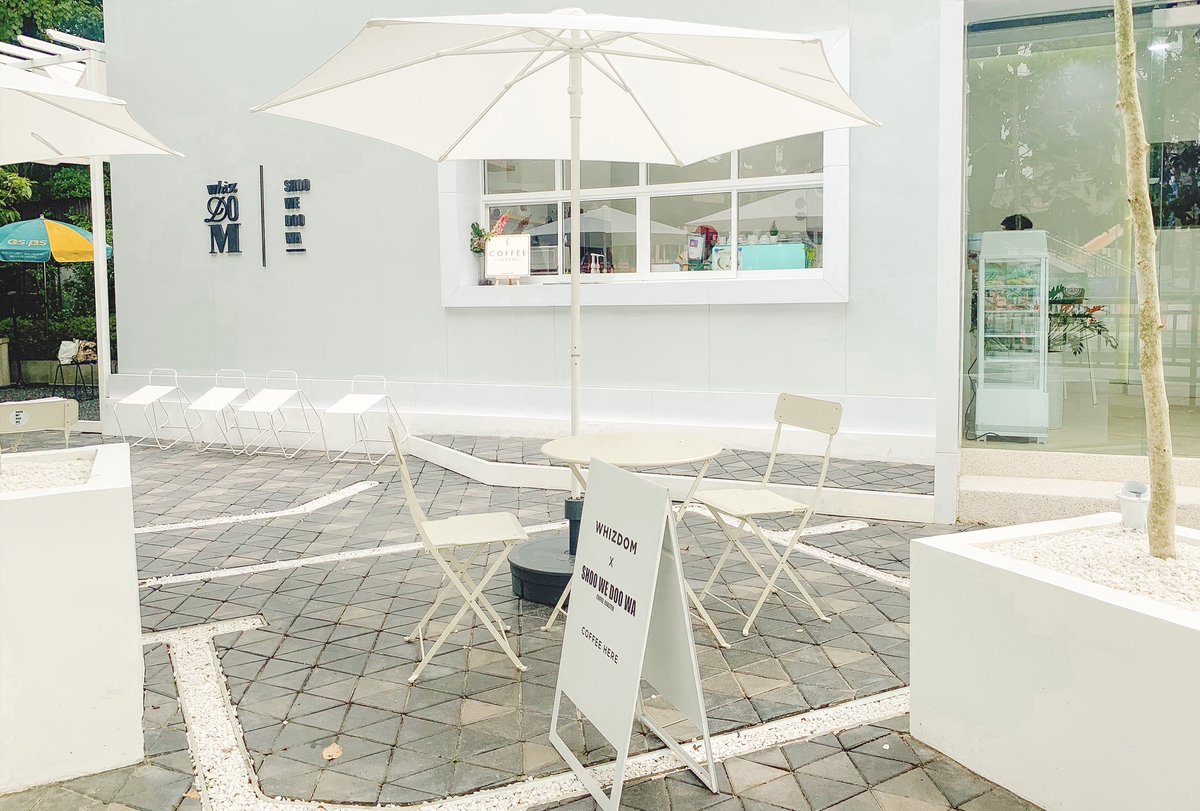 คาเฟ่เล็กๆในโครงการ Gump ari โทนฟ้าขาว น่ารัก กับเมนูเครื่องดื่มทั้ง coffee และ non-coffee เดินในโครงการก็มาซื้อเครื่องดื่มเพิ่มความสดชื่นที่นี่ได้