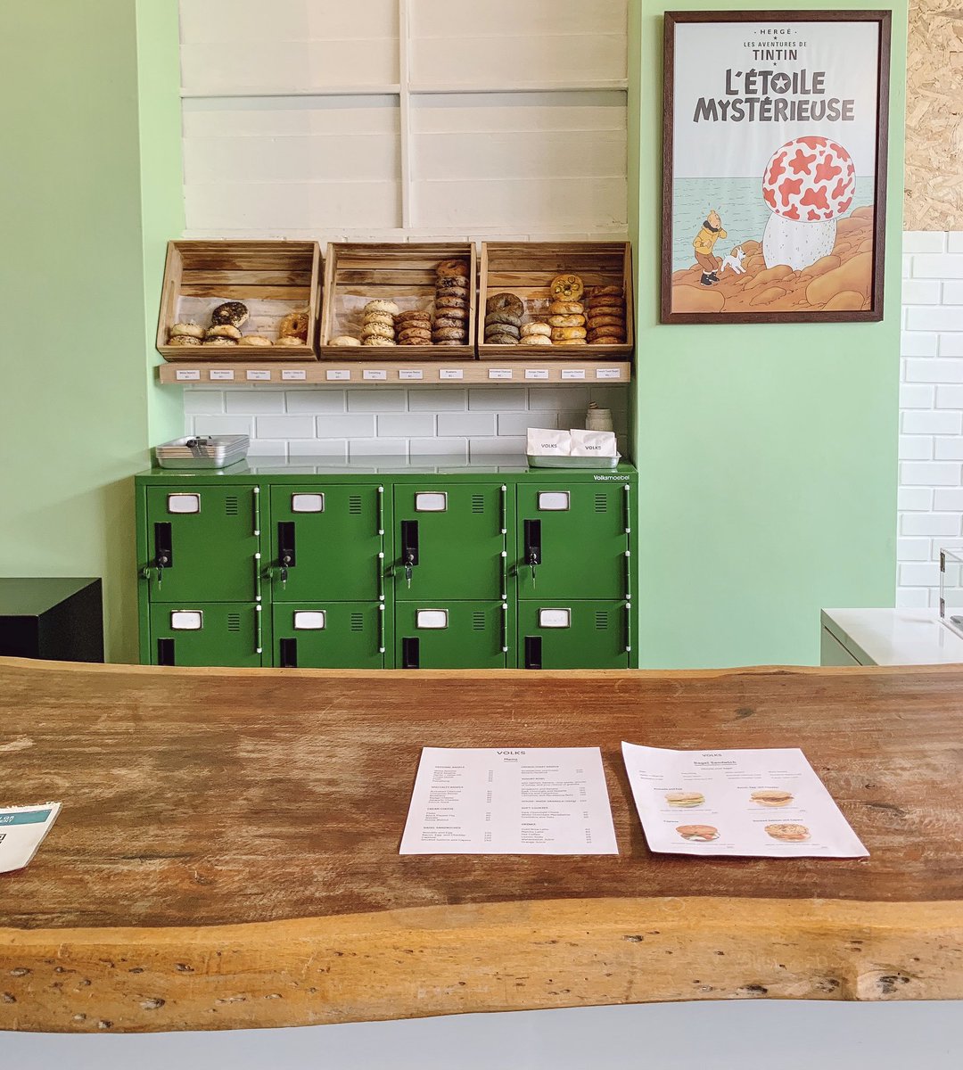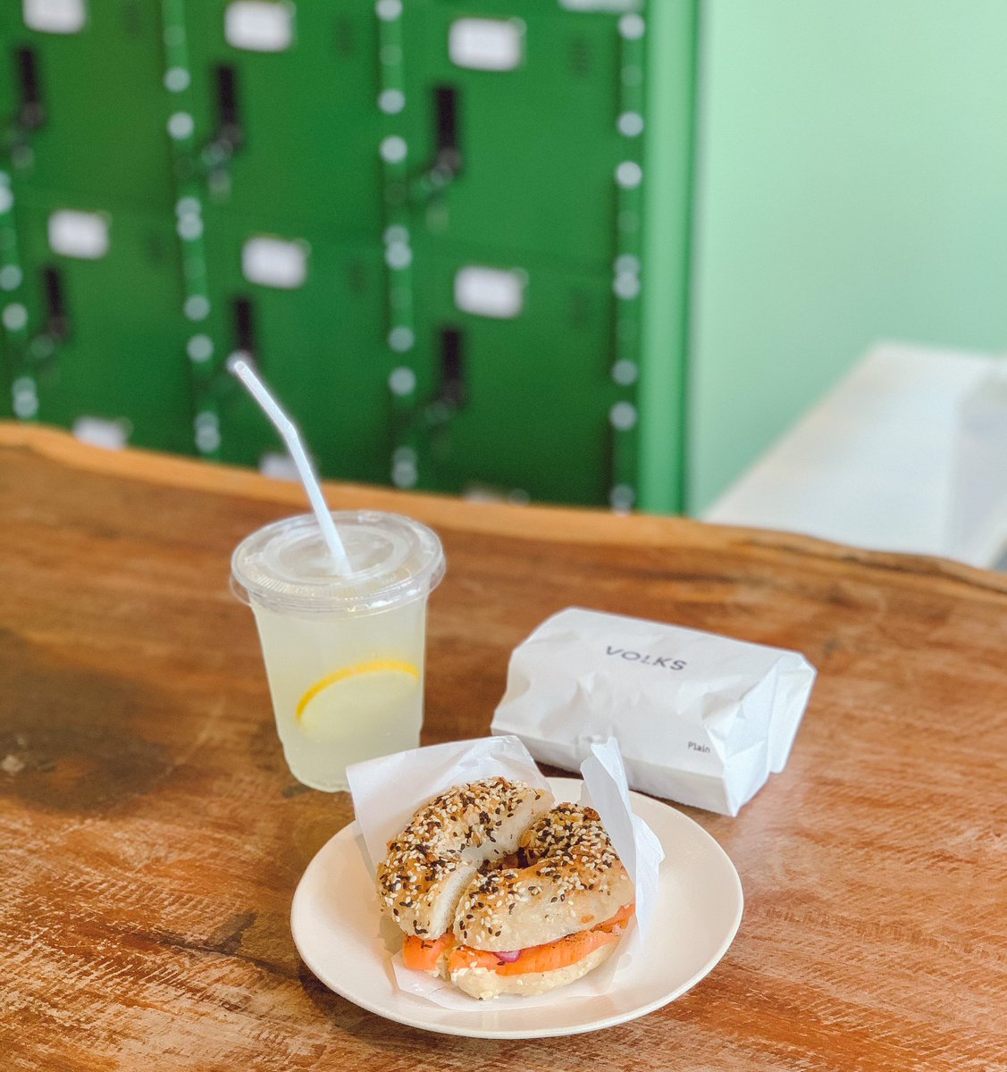 คาเฟ่ขนมปัง bagel ย่านสะพานควาย มู้ดโทนดีสุดๆ ร้านสีเขียวน่ารักมาก เมนูเป็นขนมปัง bagel ที่มีไส้และตัวเบเกิ้ลขนมปังให้เลือก เราสั่ง smoke salmon&capers โอเคเลยนะ มีเครื่องดื่ม แนะนำดี สุภาพ
