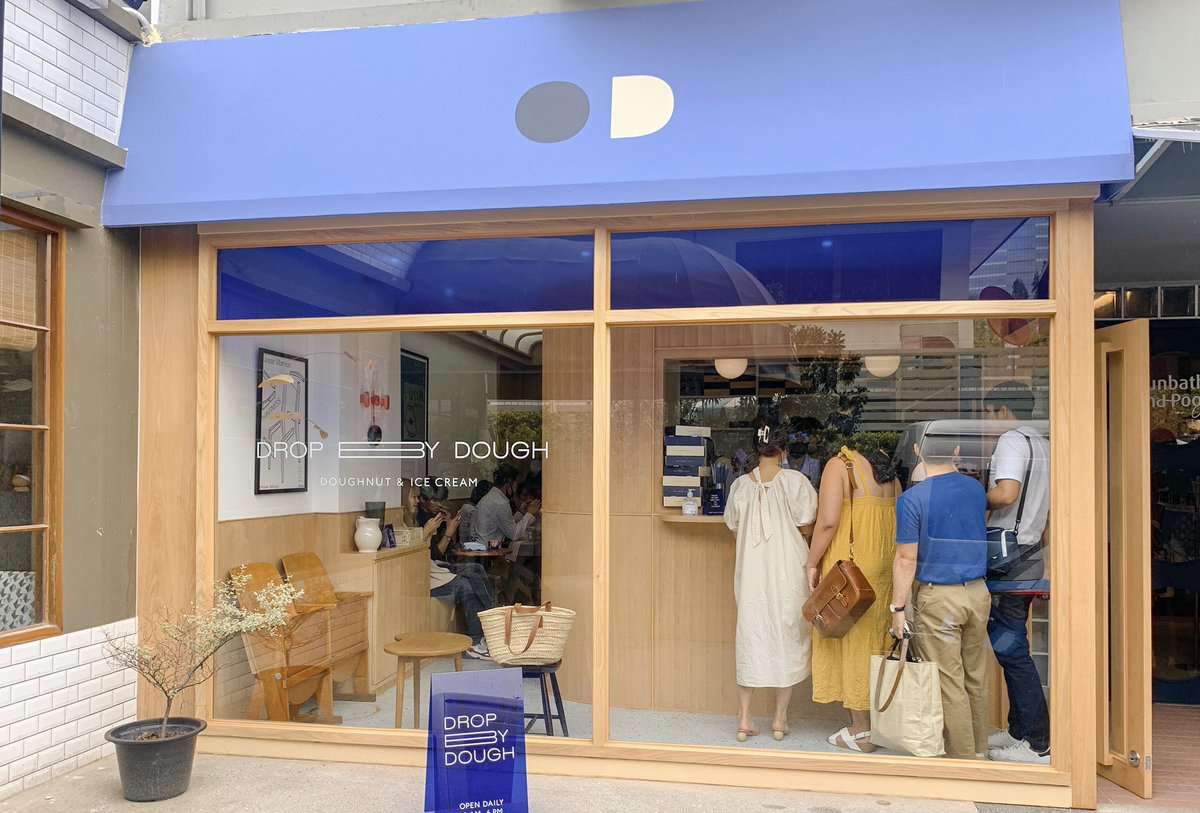 คาเฟ่โดนัทสุดฮอตมาเปิดสาขาที่อารีย์ โทนสีฟ้าตัดกับสีไม้น้ำตาล สไตล์การตกแต่งร้านที่เป็นเอกลักษณ์ ชิคๆ มุมถ่ายรูปดี โดนัทนุ่มอร่อย มีไอศกรีมโยเกิร์ต และ earl grey กับมินิโดนัท