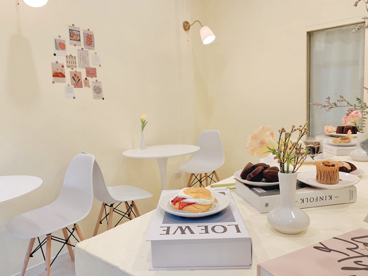 คาเฟ่สไตล์เกาหลีแถวสามย่าน โทนขาวครีม ร้านเล็กๆ มีความมินิมอล ตกแต่งโปสการ์ดตามผนังน่ารัก เครื่องดื่มจะเป็นพวกโซดาผลไม้ หวานน้อย สดชื่น การจัดวางขนมโฮมเมดน่าทาน ชีสเค้กใช้ได้เลย
