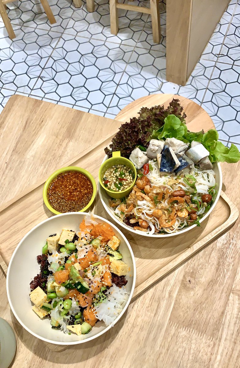 ร้านอาหารคลีนสุดแซ่บ เด็ดมากกก กับเมนู Salmon Pokebowl ใส่อะโวคาโด ยำขนมจีนซาบะดอง มีน้ำจิ้มให้เลือกหลากหลาย ทางเรากินน้ำปลาร้า กับน้ำลาบ แซ่บ อร่อยมาก กลับมาซ้ำแน่นอน