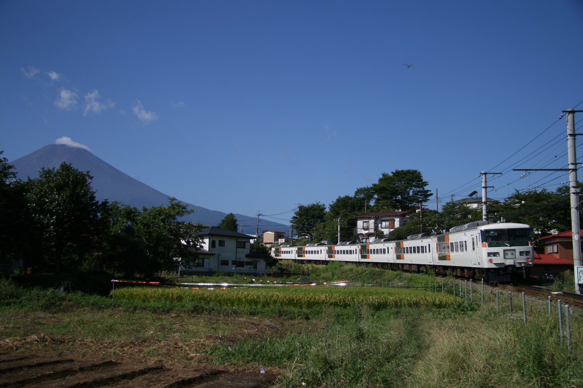 夏は富士山が見えづらいですがその日は顔を出しており、山梨側の富士山と185系のコラボも見られました。