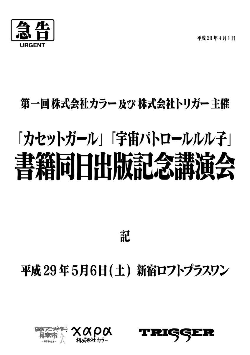 先日お知らせいたしましたトリガーさまとの合同トークイベント!本当に開催いたします!4/1のお知らせでしたが嘘ではありませんので!!チケットのご予約は4/8開始です!