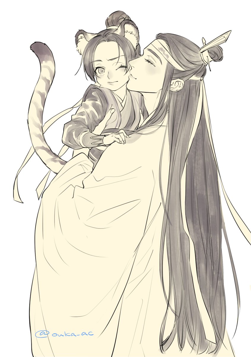 ぴーす様のイラストお借りして描かせていただきました!😊💜虎の子宗主軽く嫌がってるお顔がかわいいです笑