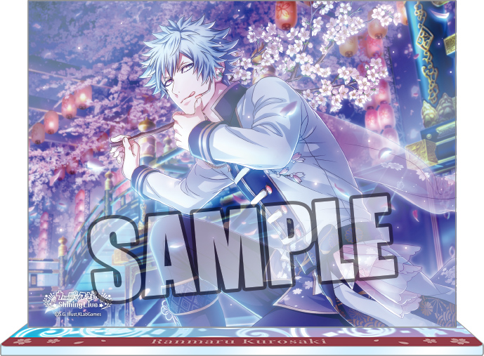 夜桜を背に歌い踊るアイドル達のアクリルスタンドと