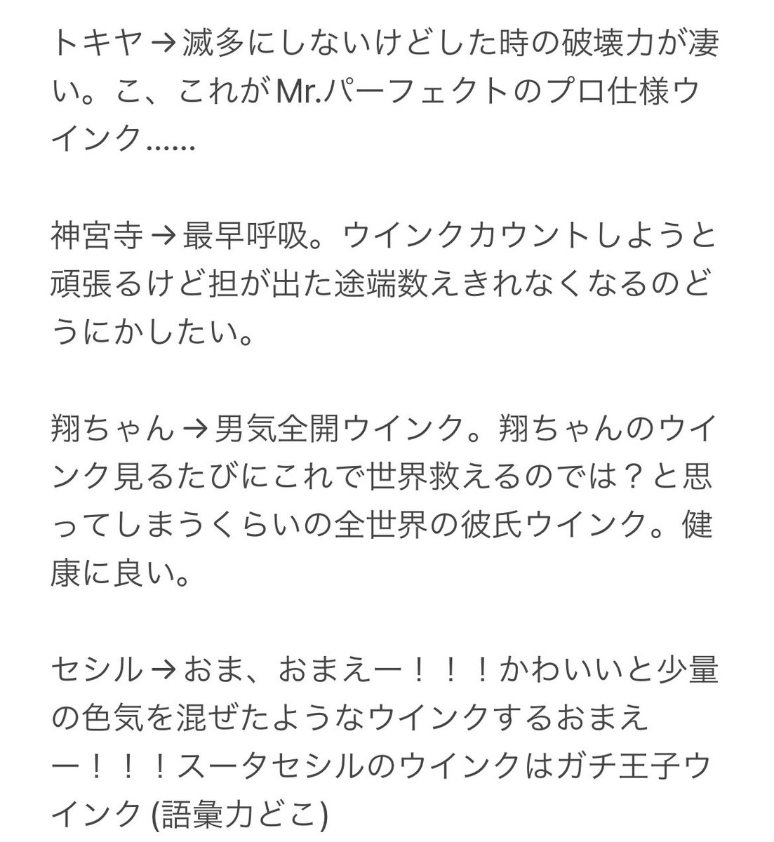 スタツア搭乗するたびに思ってた各メンバーのウインク所感まとめました。語彙はどっか行った