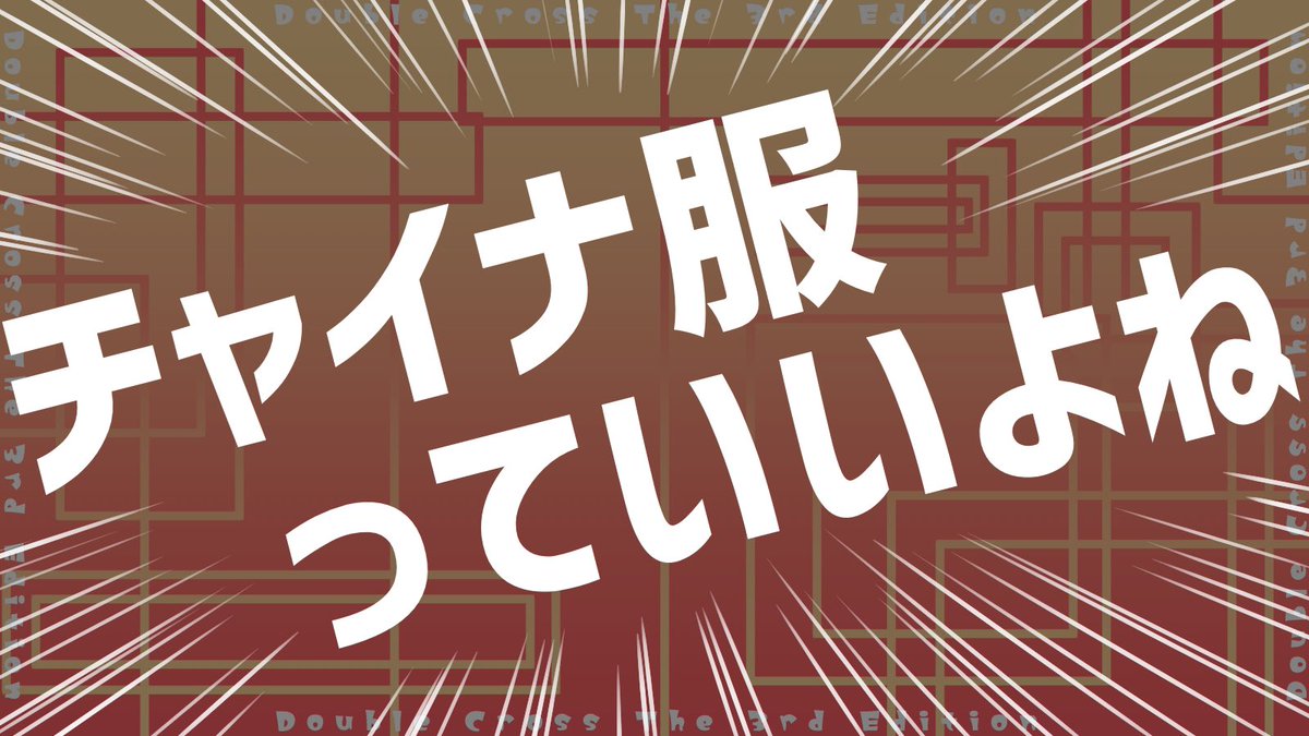 PCにチャイナ服を着せたいだけの、やっぱり同人誌みたいなシナリオです。 PCにチャイナ服、着せたいよなぁ!? ダブルクロス The 3rd Edition 「已己巳己(いこみき)ミクスアップ」 略称は「いこミク」です。 11/22 #うちよそクロス にて公開予定!