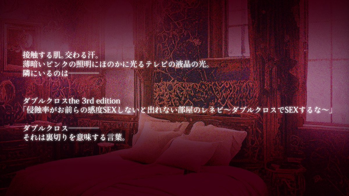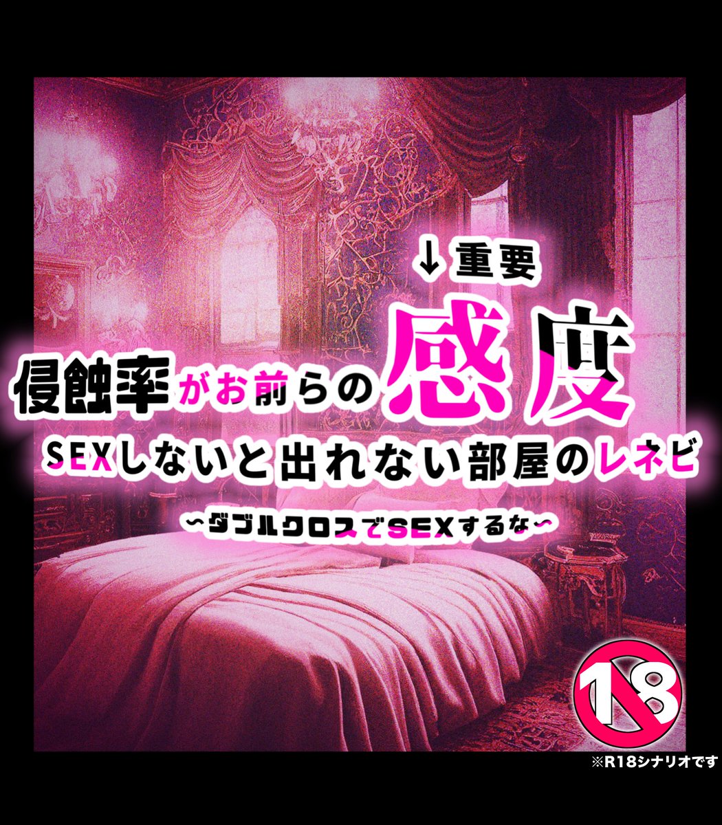 #うちよそクロス 新規シナリオ R-18 『侵蝕率がお前らの感度SEXしないと出れない部屋のレネビ~ダブルクロスでSEXするな~』 人数:2人(タイマン可能) 推奨ルルブ:GMがデータ確認のためのEAと上級ルルブ 経験点:自由/継続推奨 gorinyan.booth.pm/items/4335430