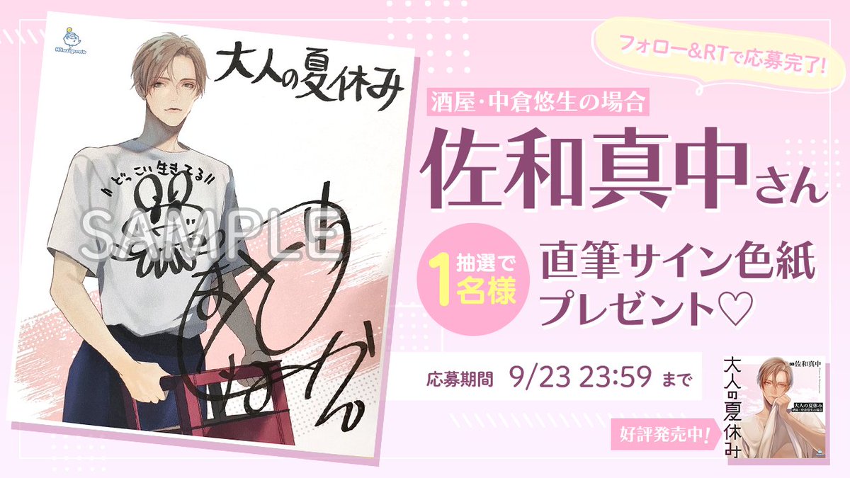 「酒屋・中倉悠生の場合」の発売を記念して #佐和真中 さま直筆サイン色紙を1名様にプレゼント!
