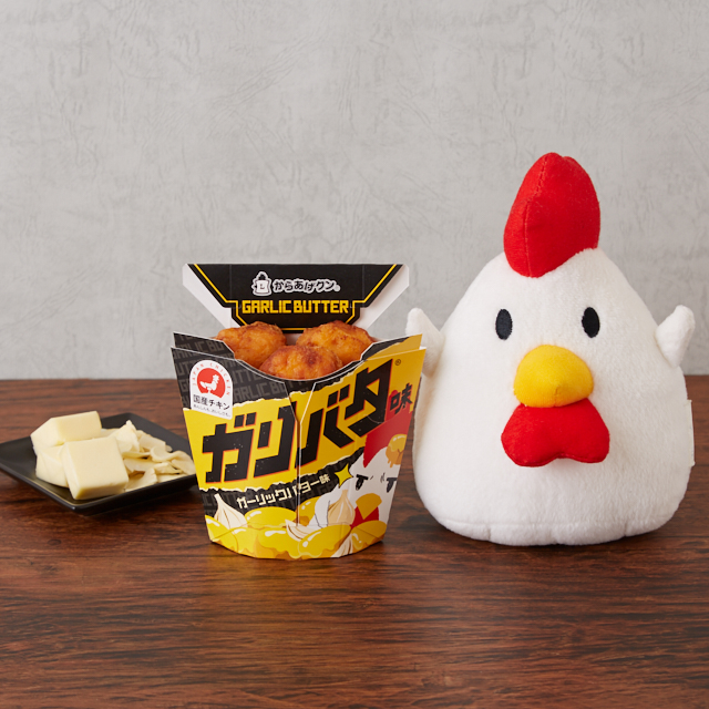 「からあげクン ガリバタ®味」発売中♪やみつきになるガーリックバターの香り。イラストのからあげクンも、やみつきなカッコイイ表情をしています(^^)
