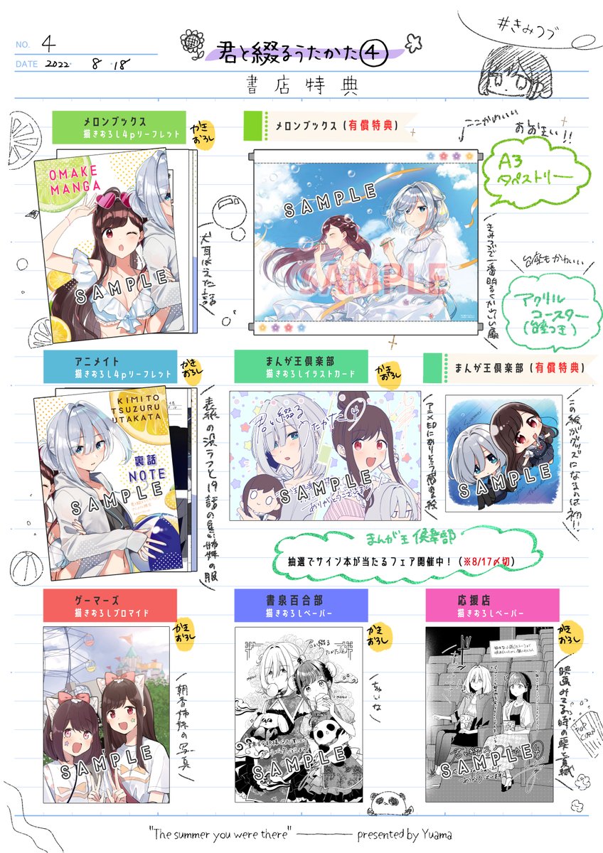 帯つき書影、書店特典まとめ画像公開!!今回は有償特典2か所あります🫰サイン本抽選もお見逃しなく!