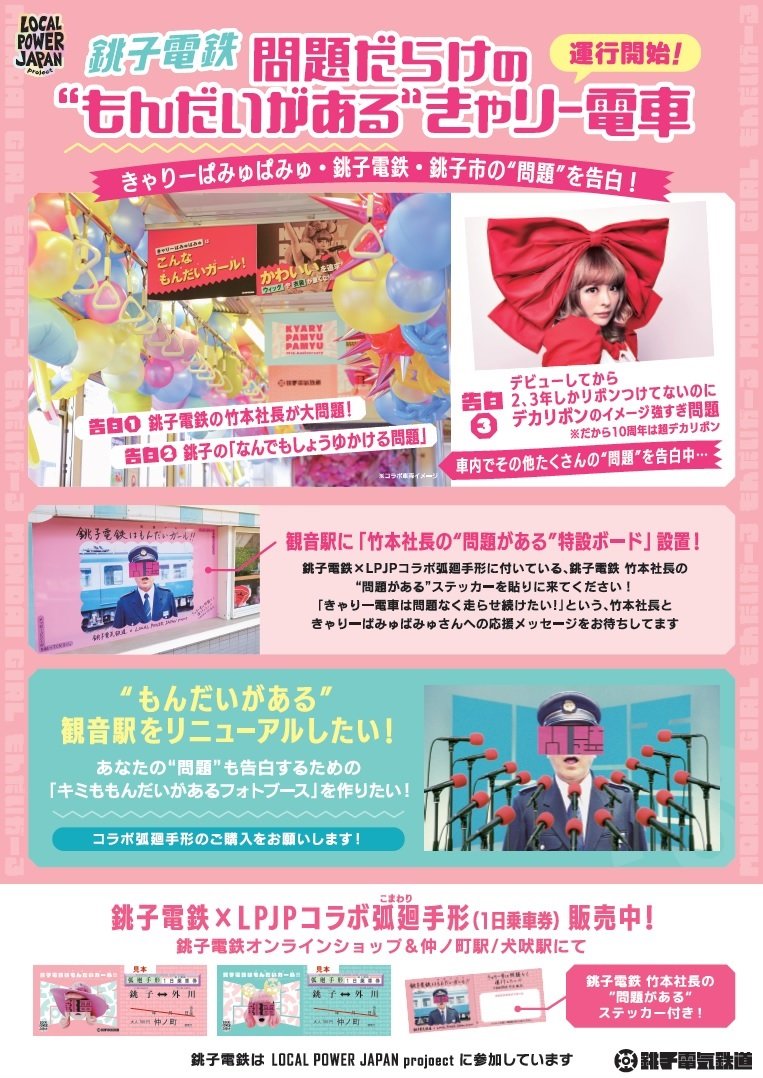 歌手の #きゃりーぱみゅぱみゅ さんが、銚子電鉄とコラボした「きゃりー電車」に初乗車しました。「地方から日本を元気に」をテーマにしたきゃりーさんのプロジェクトの一環。コラボグッズの売り上げを活用し、駅舎もリニューアルされました。