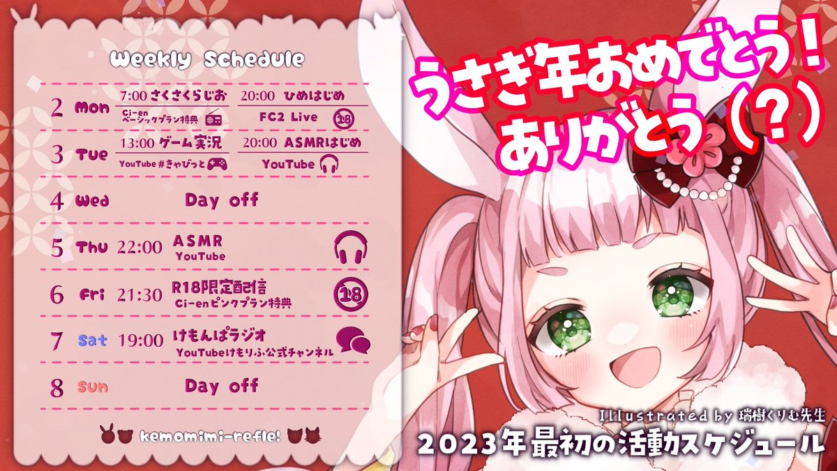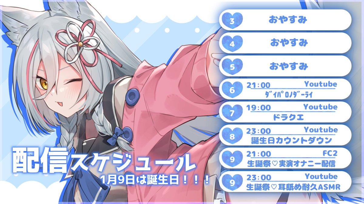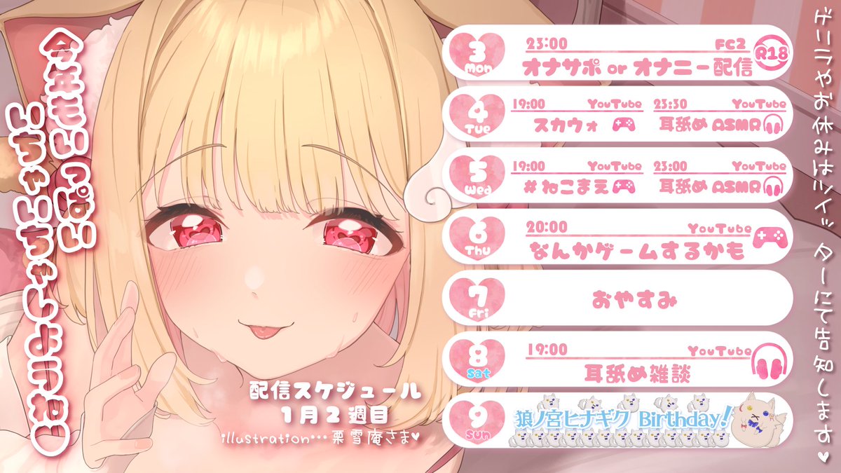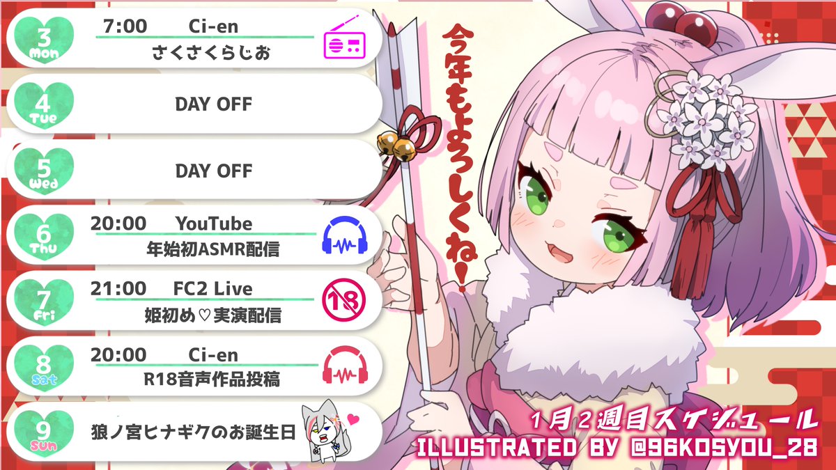 1月9日は狼ノ宮ヒナギクちゃんのお誕生日です💝他、それぞれの姫初め配信などお楽しみいただけるお正月企画が盛り沢山です✨