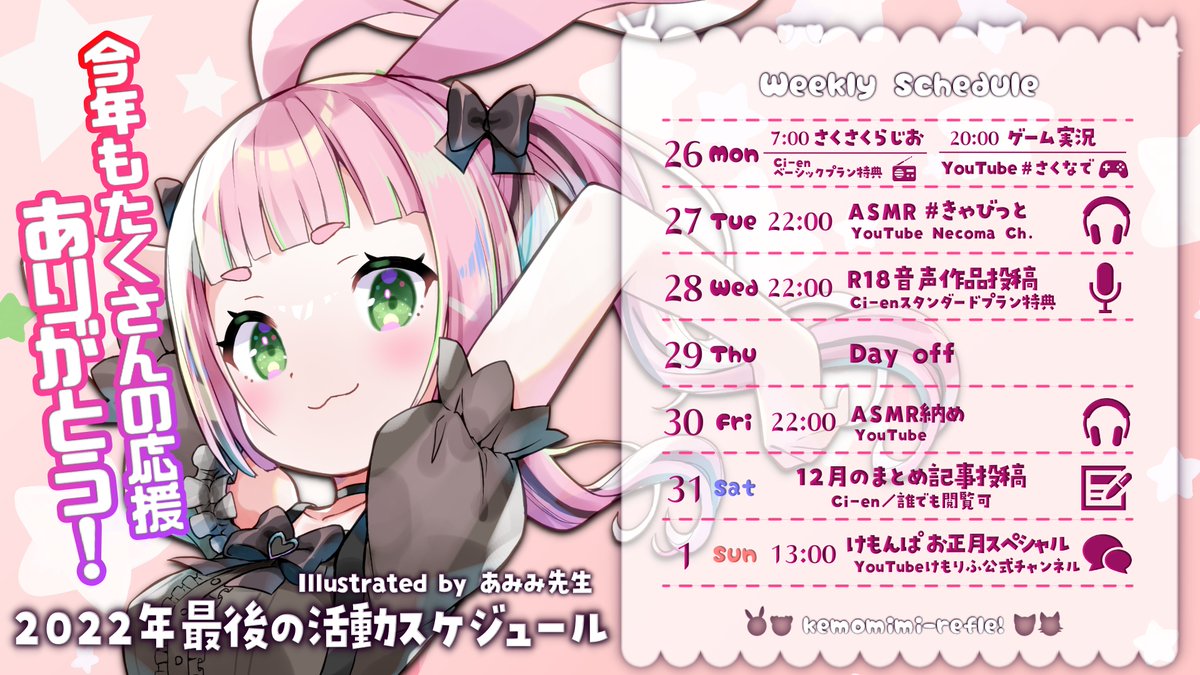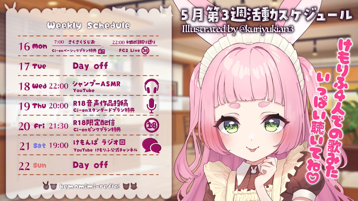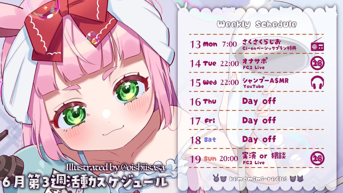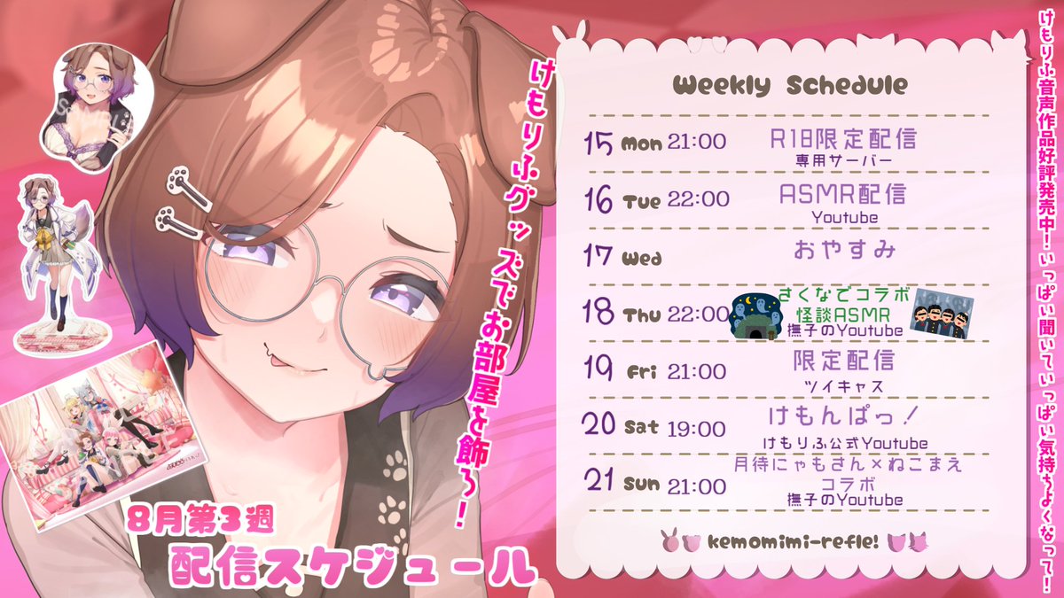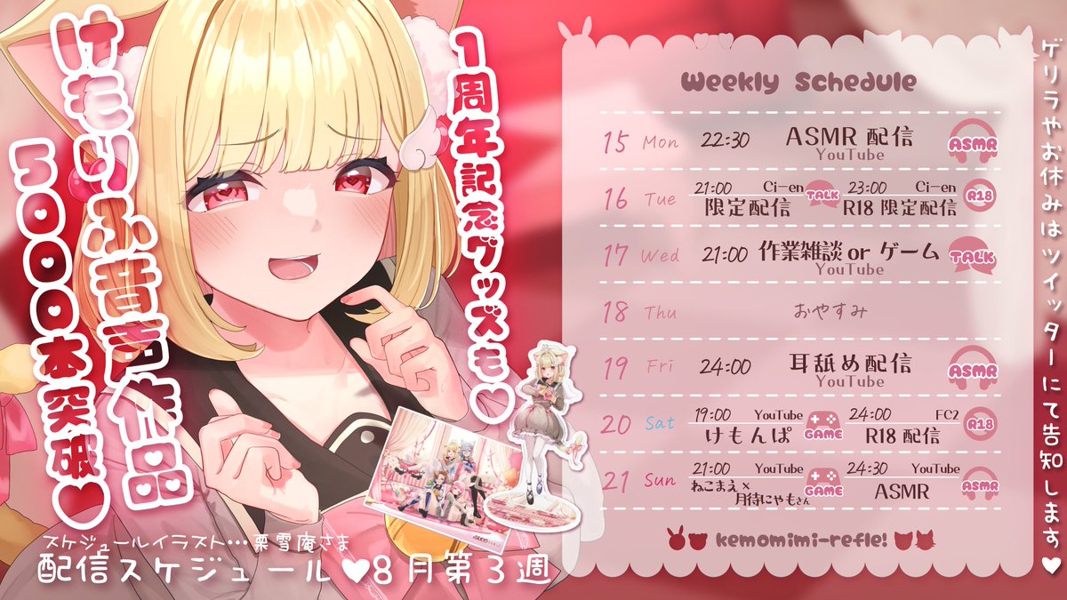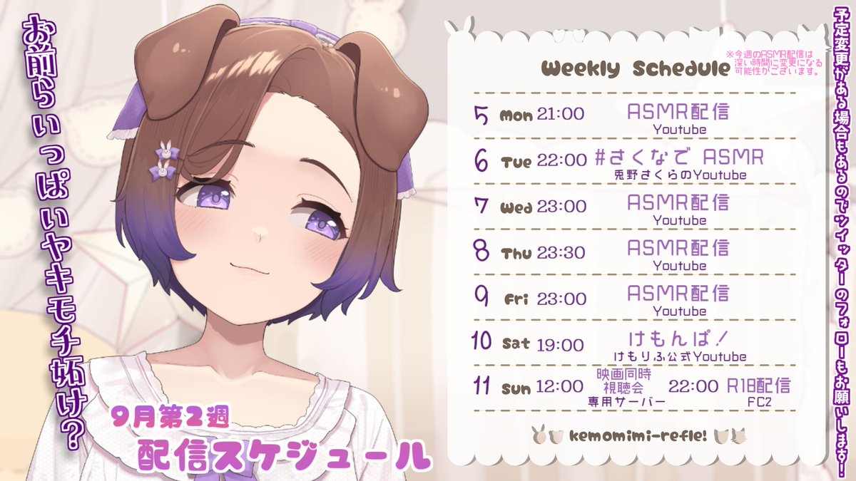 今週もASMRにゲーム実況、アダルト配信、歌ってみた投稿、各所限定配信等と盛りだくさんです✨