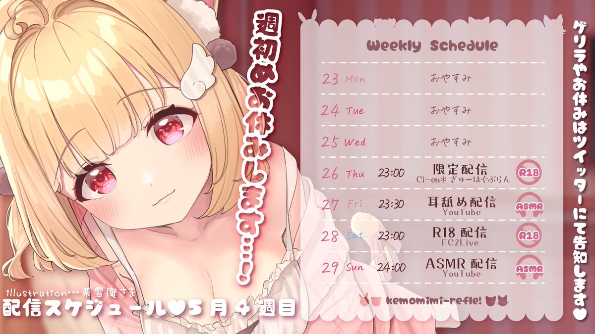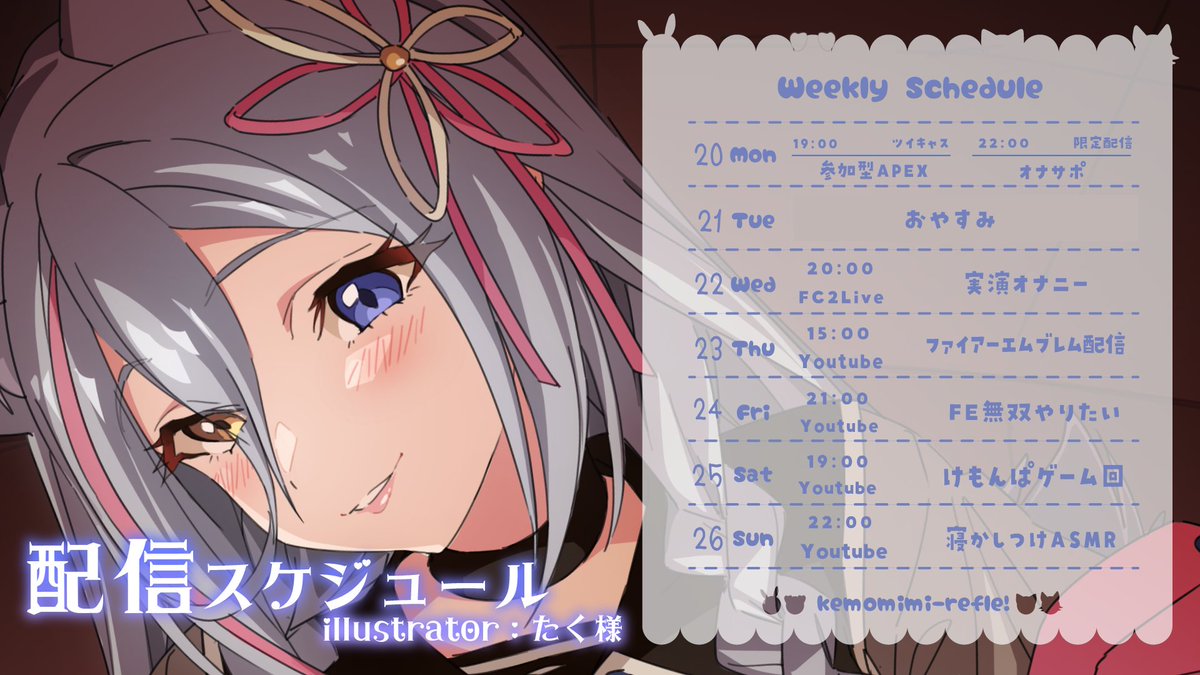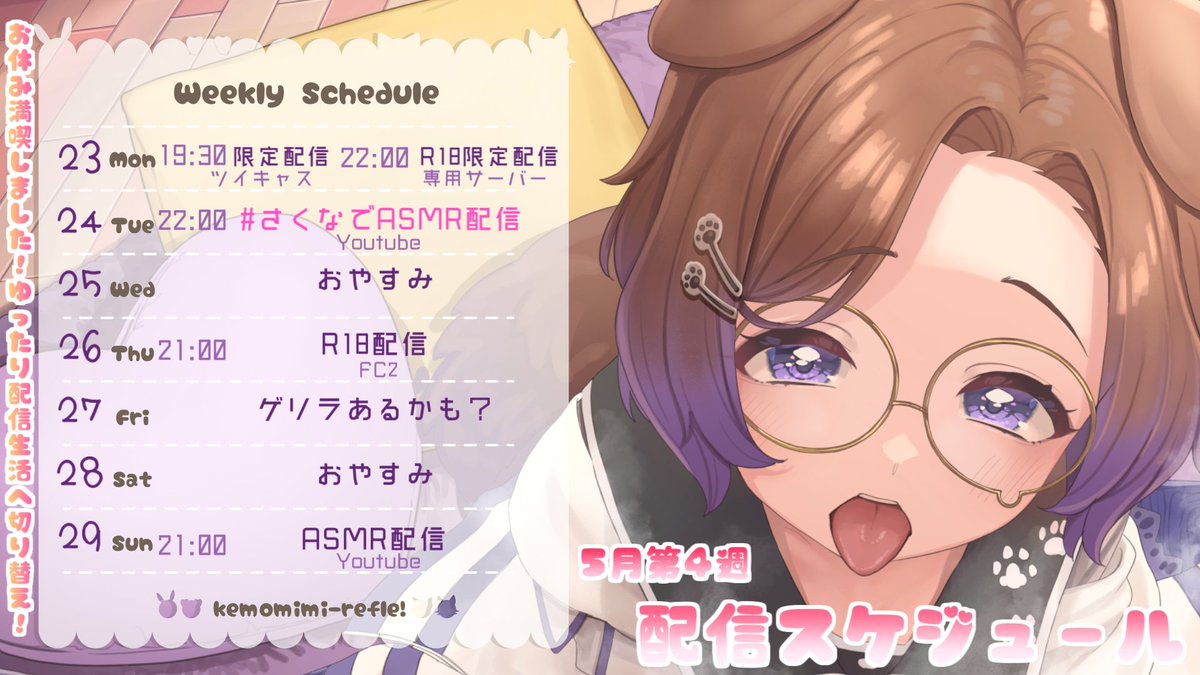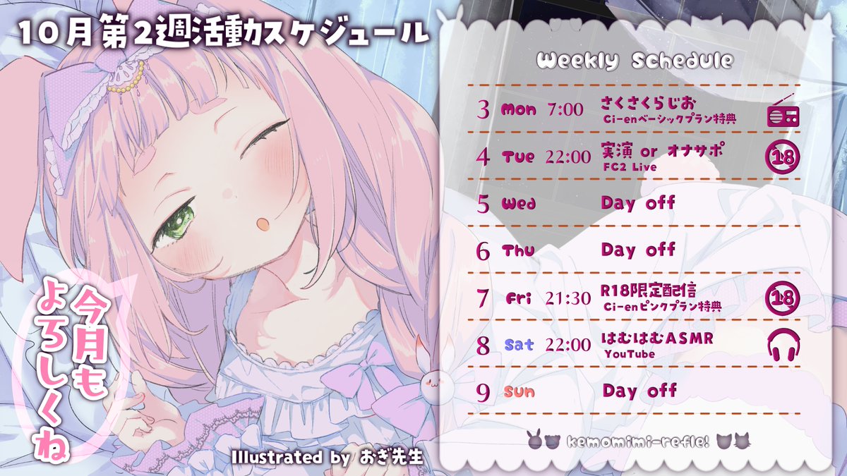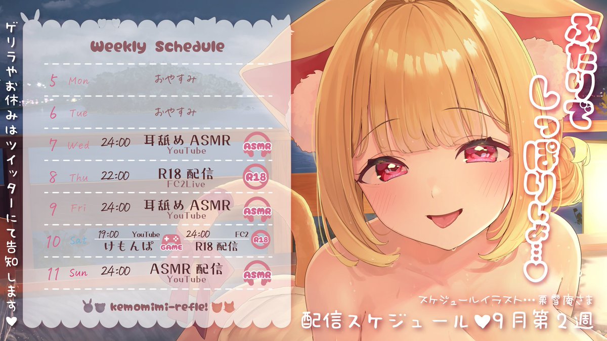今週はASMRにゲーム実況、アダルト配信、限定配信と盛りだくさんです✨