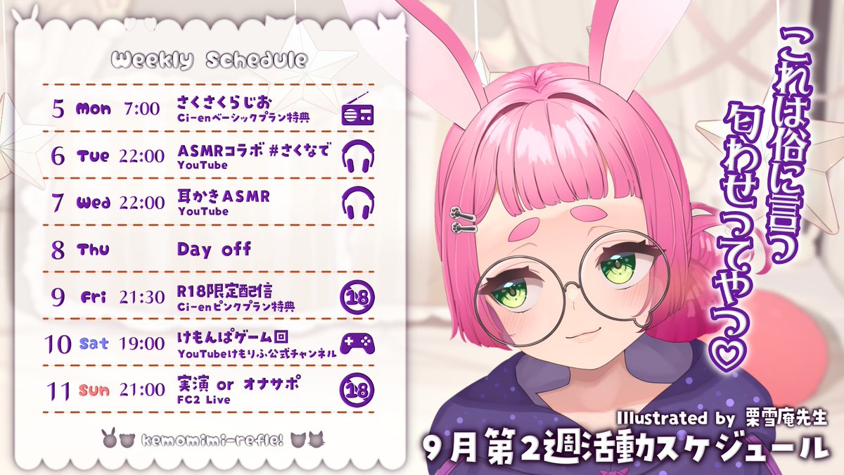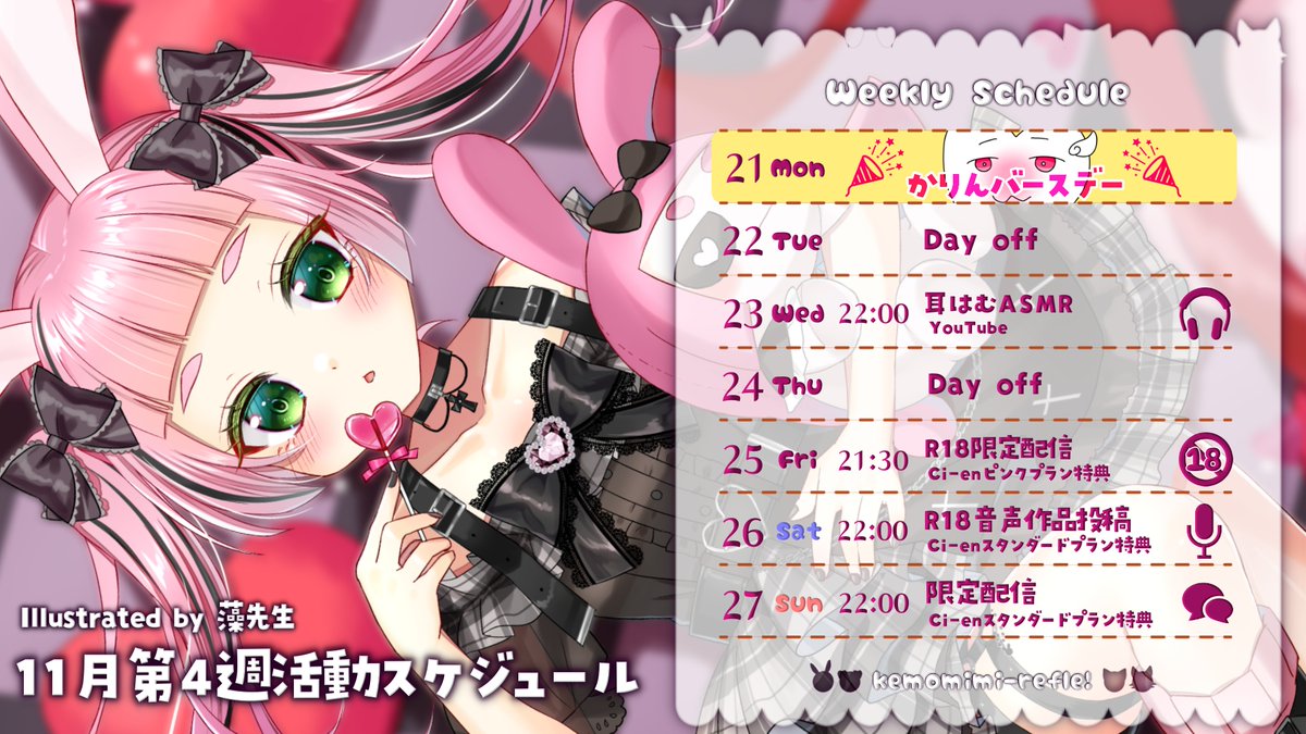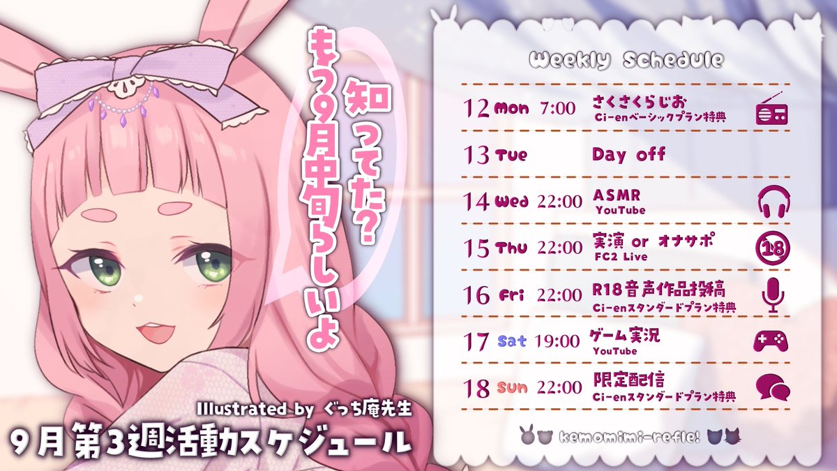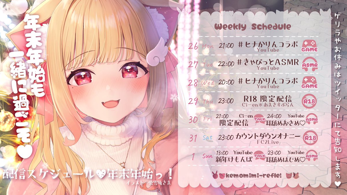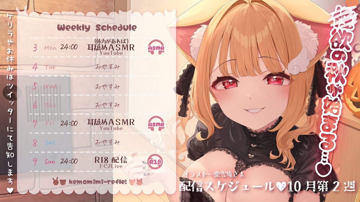 今週はASMRにゲーム実況、アダルト配信、限定配信と盛りだくさんです✨