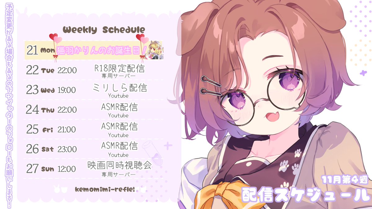 🐺🐶11月第4週目のスケジュール🐱🐰
