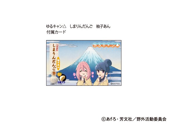 #ゆるキャンΔ 新商品 #しまりんだんご 柚子あん リニューアルした しまりんだんご 粒あん・巨峰あんに続く第3弾は ゆずの香りがする餡です パッケージデザインの しまりんだんごカード付き