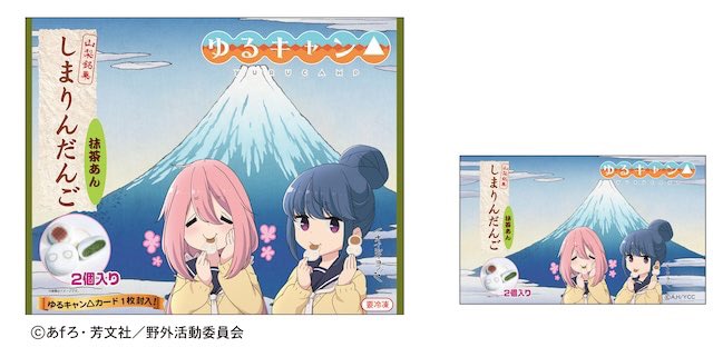 『 #ゆるキャン△』新商品 #しまりんだんご 第6弾 抹茶あん カード付き   下記で予約販売スタートしました tanikawashop.thebase.in   店頭販売開始は12/23です 谷川商事前冷凍自販機でも販売します! #12/25しまりんだんご発売2周年 に合わせて新商品も企画中です!