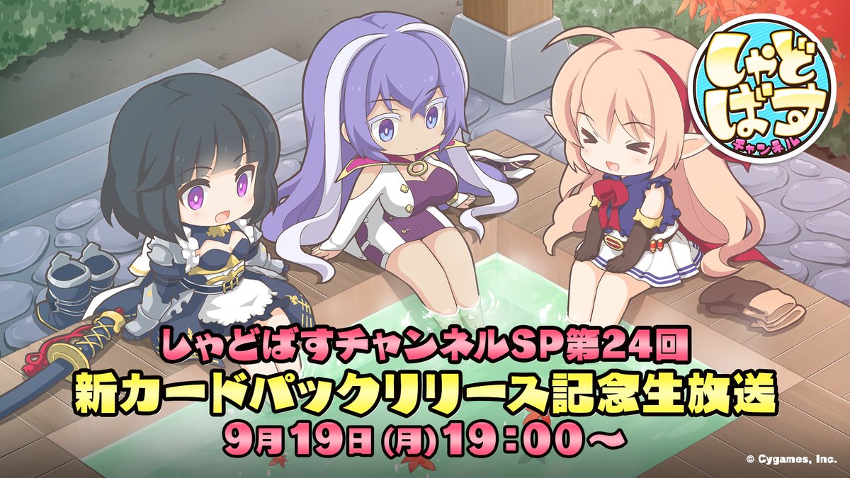 【しゃどばすチャンネル】 9月12日(土) 19:00から「しゃどばすチャンネルSP第16回」を生放送! ゲーム内新情報が盛りだくさん!さらに、新カードパックのPVを初公開! 詳細はこちら! shadowverse.jp/news/?announce… #シャドウバース #しゃどばすチャンネル