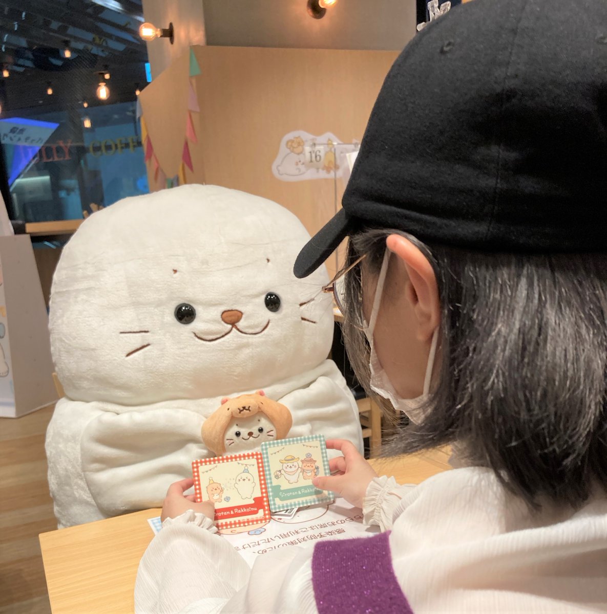 に大きなパぺたんが遊びにきてくれてるよ🌟 相席してくれるから、おひとり様でも楽しめます💕 空席状況はコチラで配信中 →