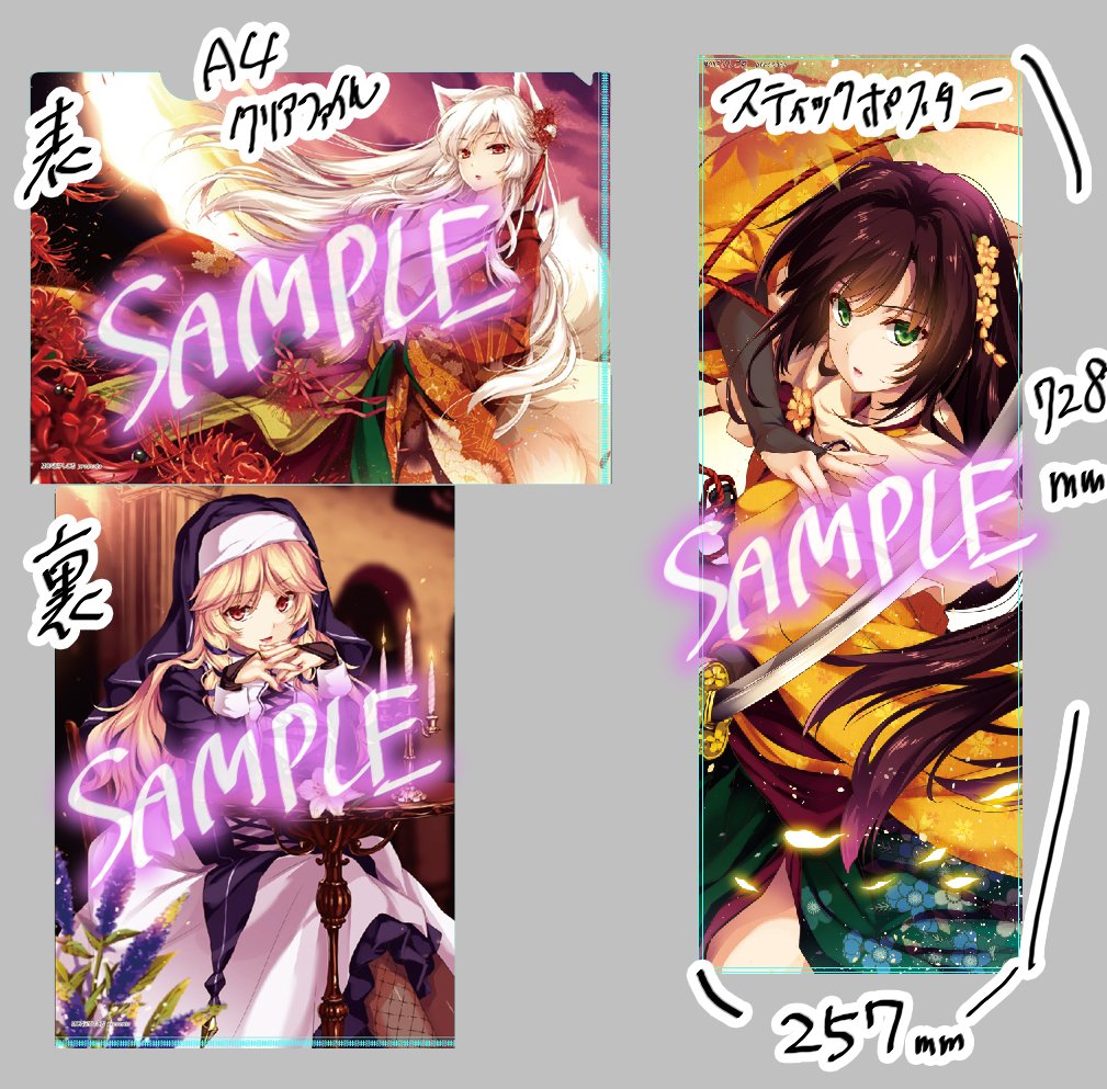あとグッズはA4クリアファイルとスティックポスターです。こちらは部数多めなので完売にならない程度に持っていきます。会場で余ったら委託にまわす予定です。 #フラワーナイトガール #じゃぶマイ
