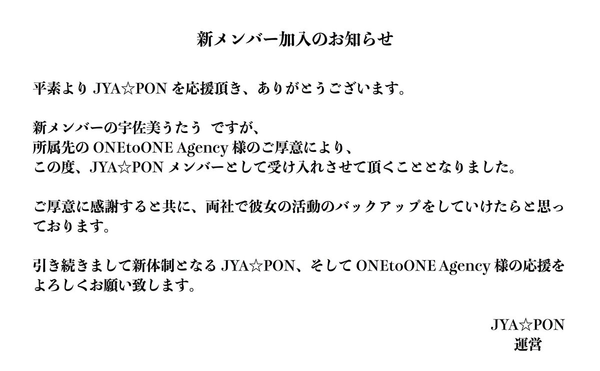 ▶JYA☆PON 新メンバー加入‼️