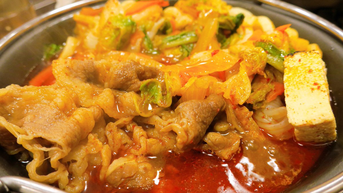 ✔️#キムチーズ牛すき鍋定食