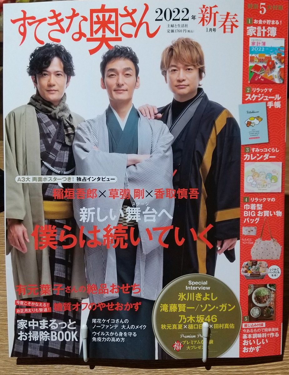 稲垣&草なぎ&香取:節目の5年目は黒紋付羽織はかま姿 「すてきな奥さん」新春1月号の表紙ビジュアル公開 #稲垣吾郎 #草彅剛 #香取慎吾 #すてきな奥さん mainichikirei.jp/article/202210…