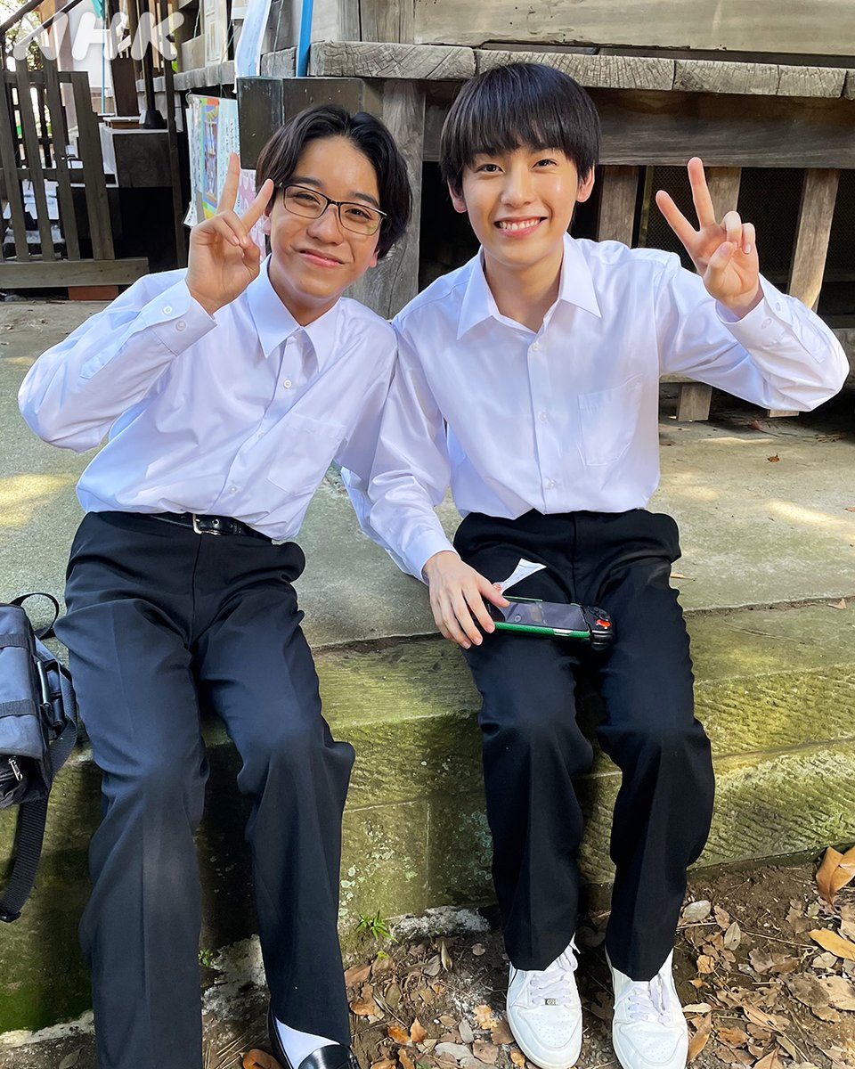 丸川亮太役・ #岸蒼太(#ジャニーズJr.)さんと、野嶋恵一役・ #阿達慶(#ジャニーズJr.)さんのオフショット。