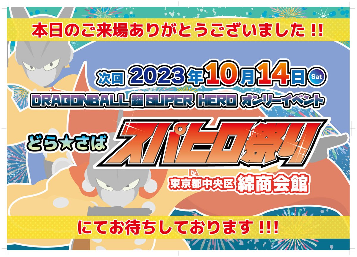 #どらさばサイヤ祭り 撤収いたしました! 本日はたくさんの方にご参加下さり誠にありがとうございました!!✨🙇 とてもあっという間でした! ビンゴ大会も盛り上げていただき本当にありがとうございました!🎉 次回のどらさば☆スパヒロ祭りもよろしくお願いいたします!!