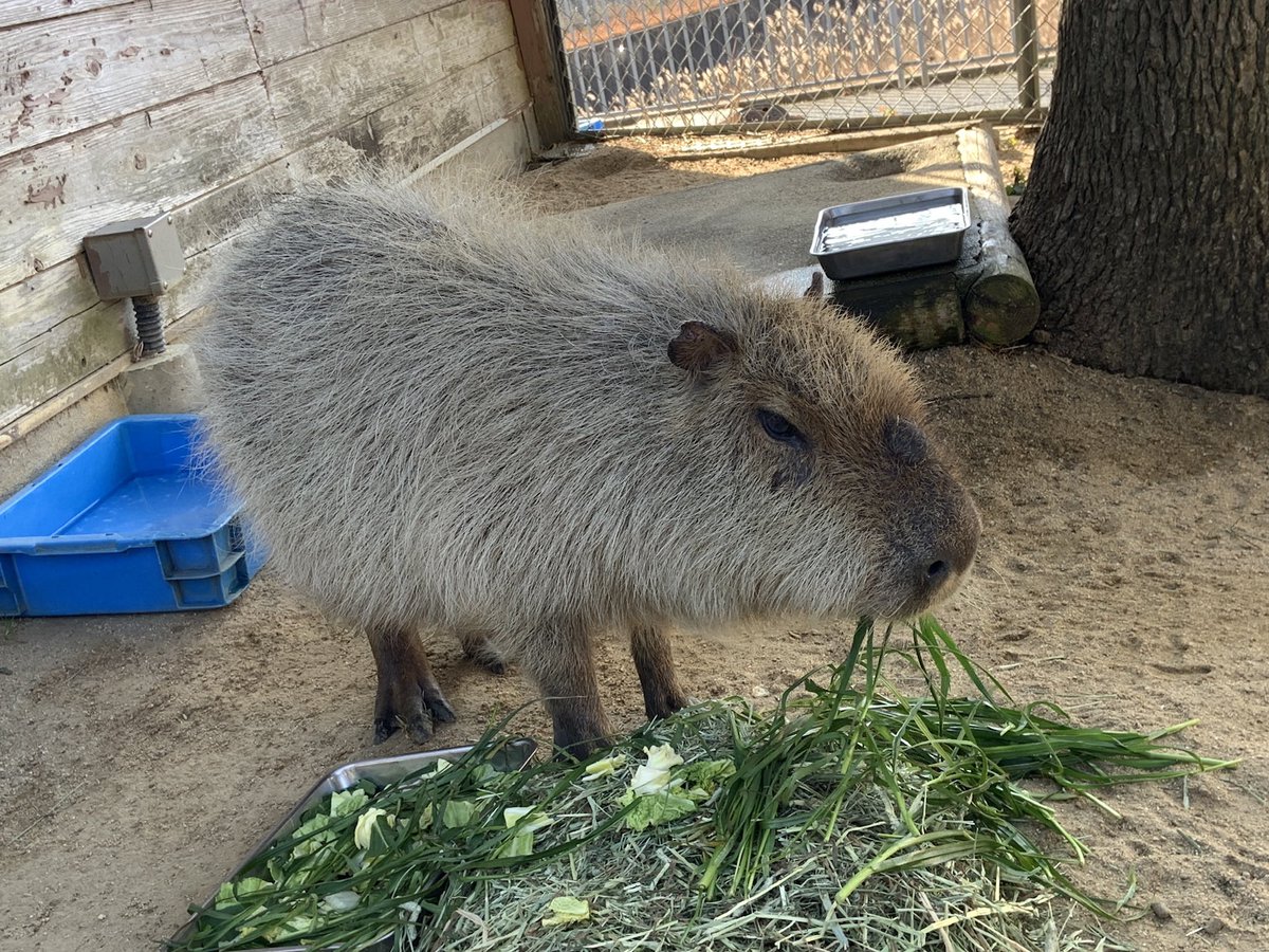 本日、カピバラの担当者からその場に居居合わせたお客様へのプレゼントとして、カピバラのなっつへのサプライズ餌やり体験を実施しました。 なっつも喜んでくれましたよ。((・x・))