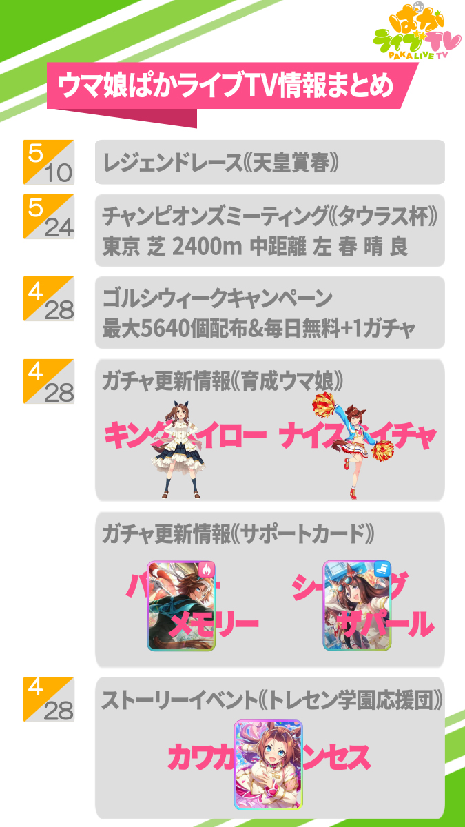新情報がいっぱいで、GWもウマ娘で盛り上がれそうですね〜✨