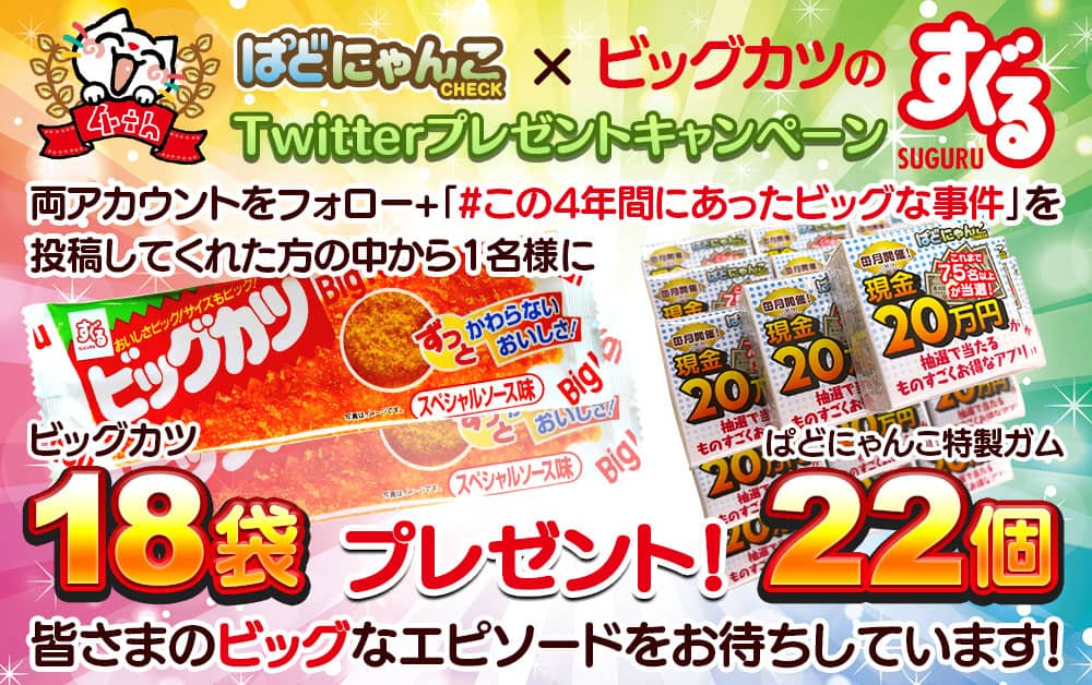 1名様にビッグカツ18袋とぱどにゃんこ特製ガム22個をプレゼント!