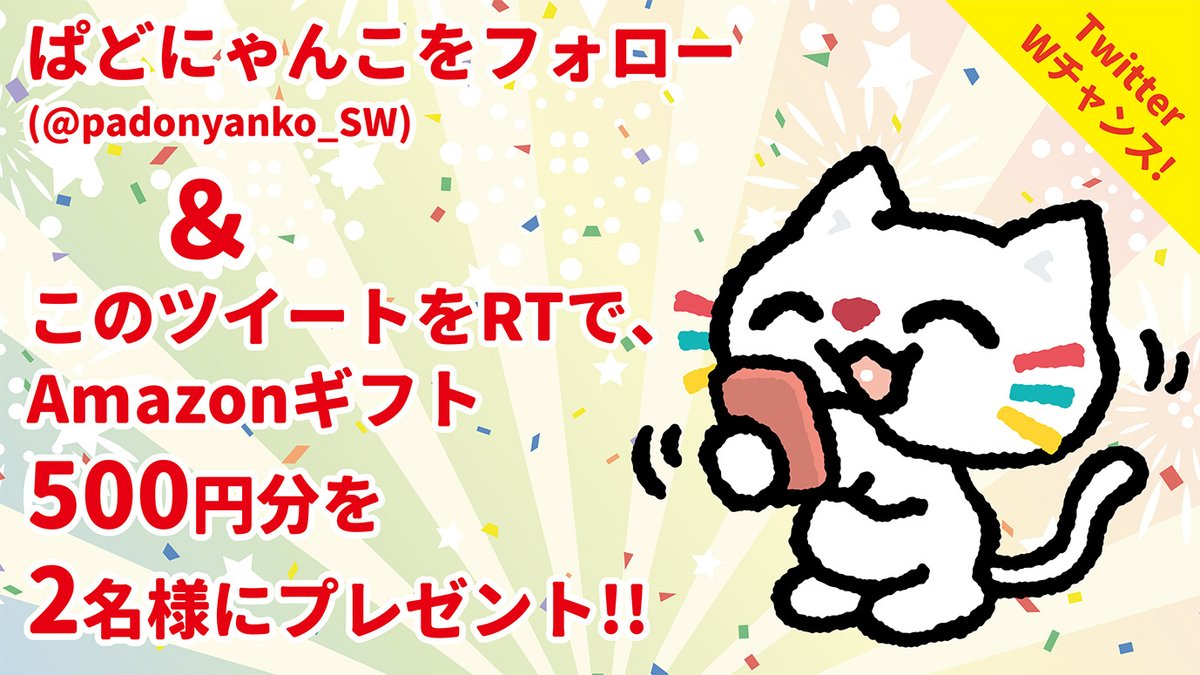 さらにWチャンス!ぱどにゃんこ(@padonyanko_SW)をフォロー&このツイートをRTで、2名様にAmazonギフト500円分プレゼント!